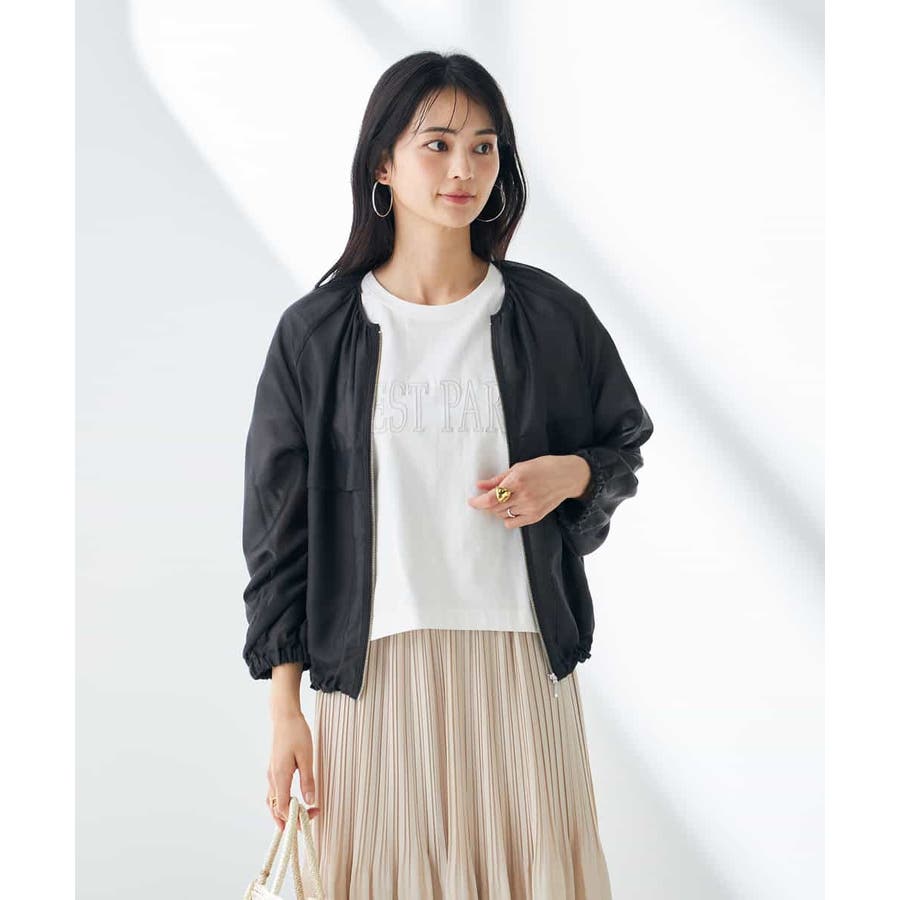 きれいめにもカジュアルにも使いやすいノーカラーブルゾンは