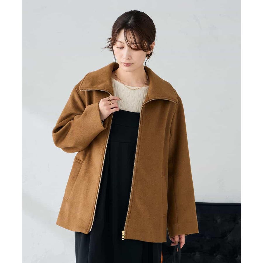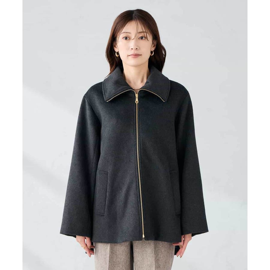 ・ステンカラーとスタンドカラーの衿2WAYのウールジャケット