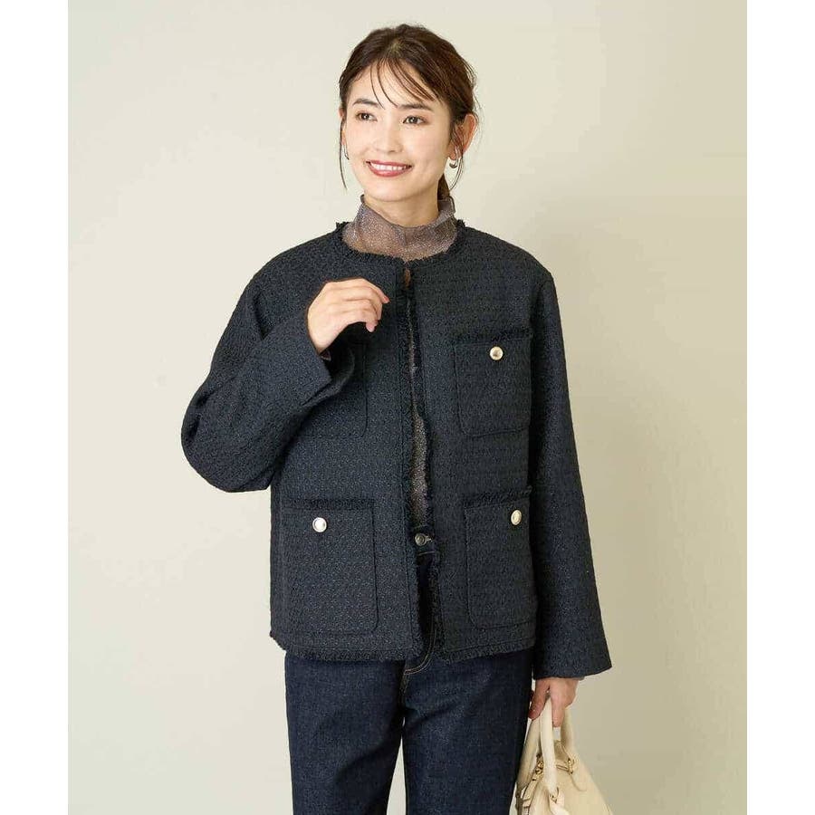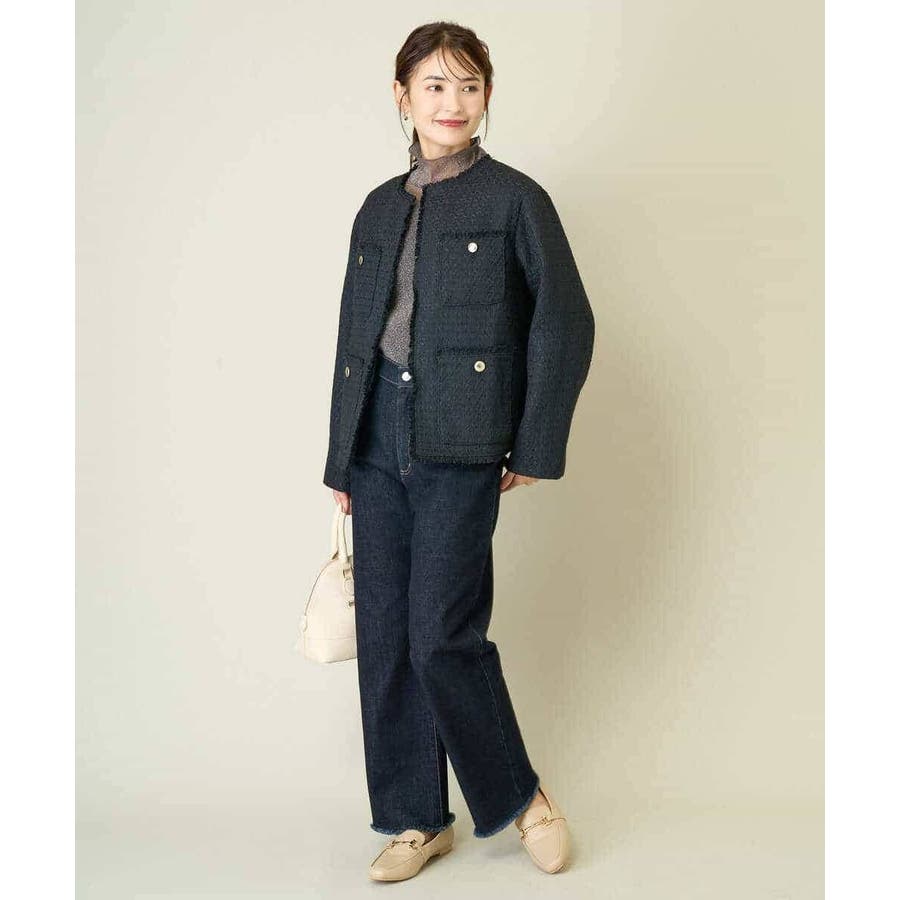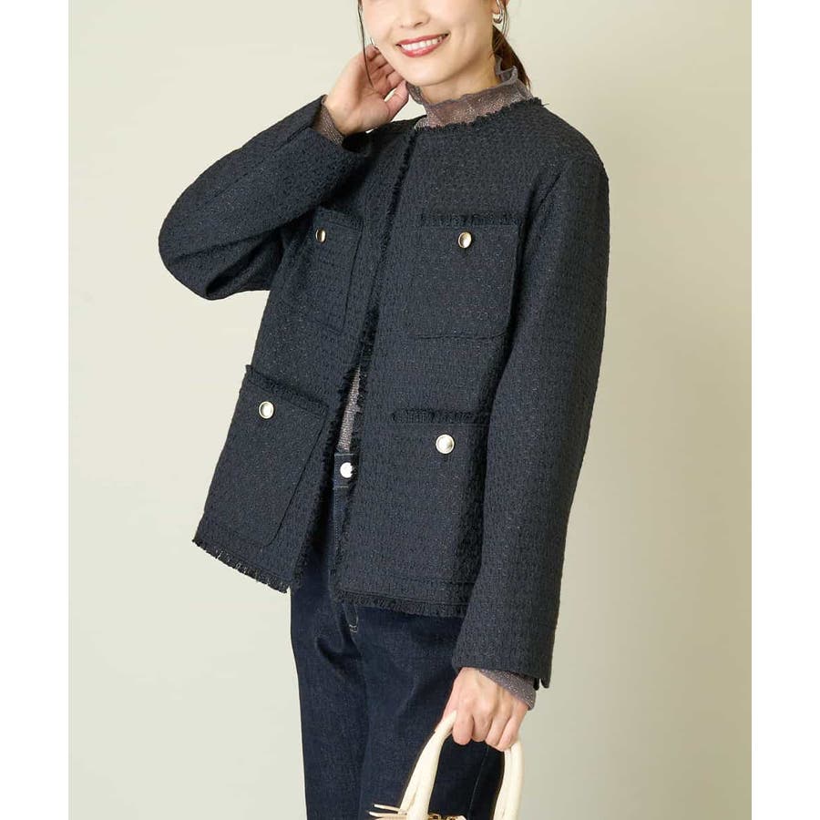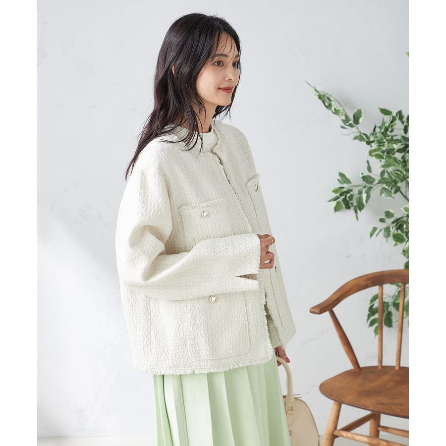 ・程よくゆとりのあるゆったりとしたサイズ感のツイードジャケット