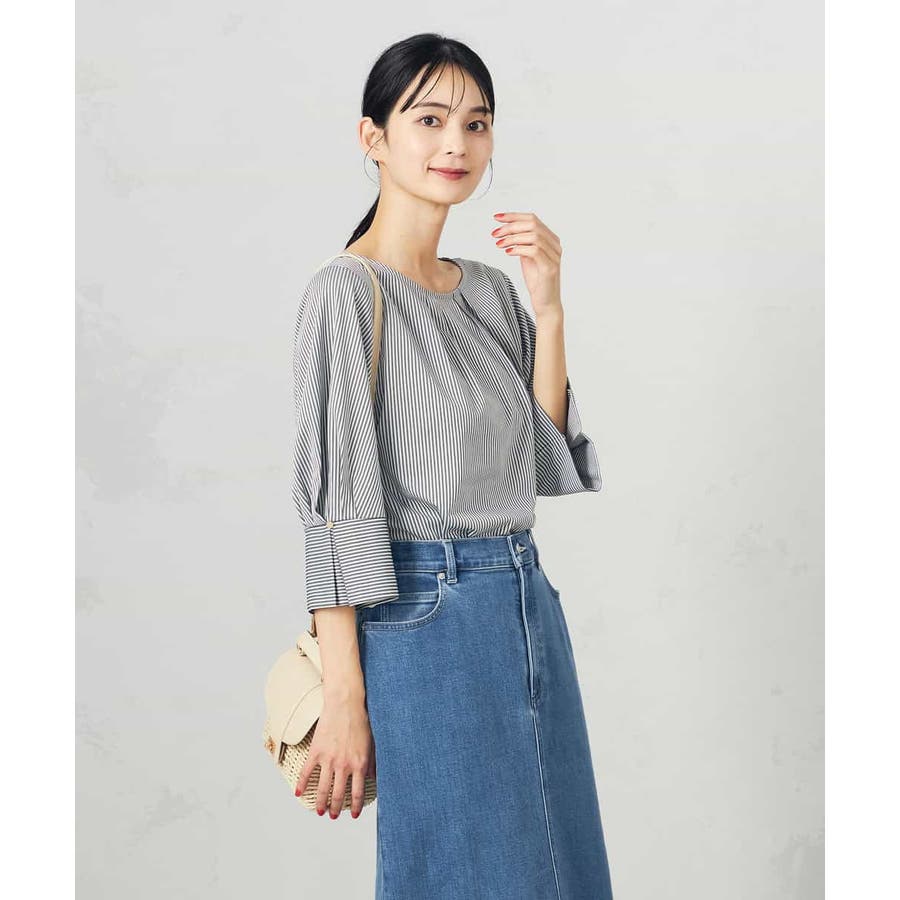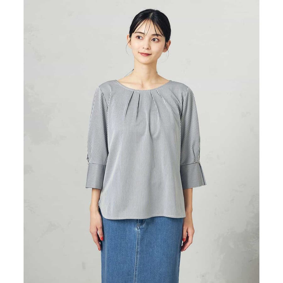 【UVカット/イージーケア】ストライプタックスリーブカットソー