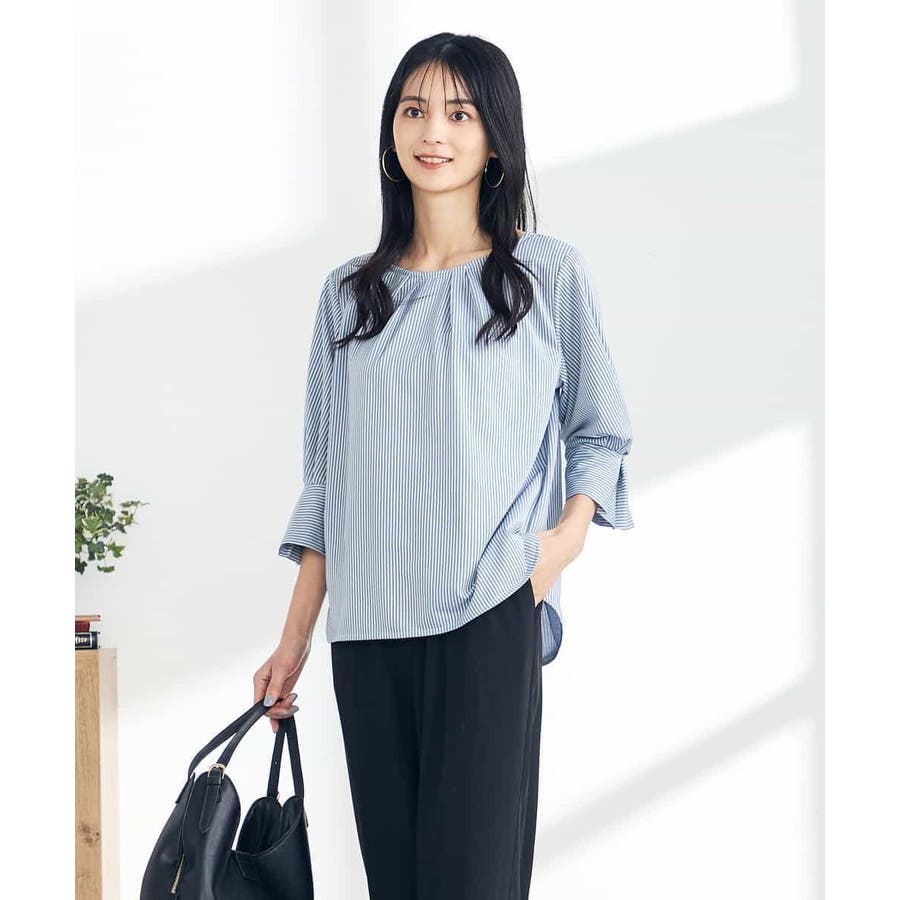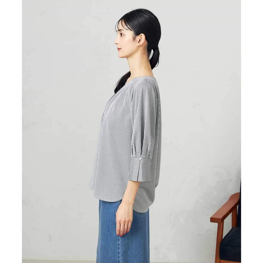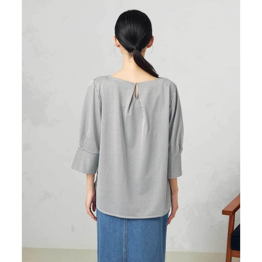 ・ブラウスライクなストライプ柄のカットソートップス
