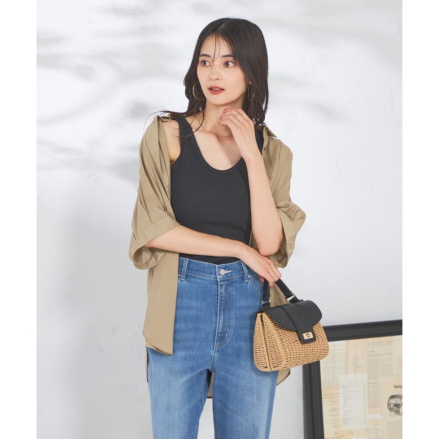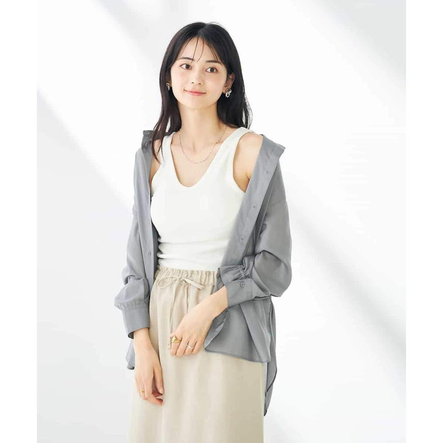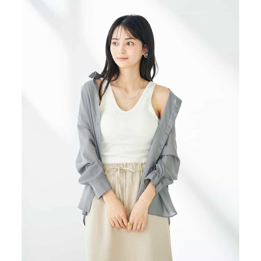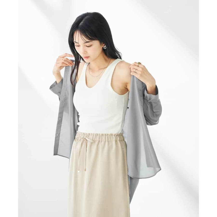 シャツや透け感のあるトップスとのスタイリングがおすすめ。