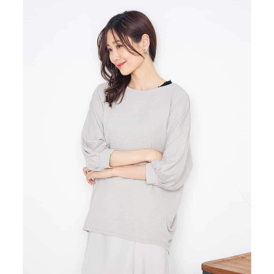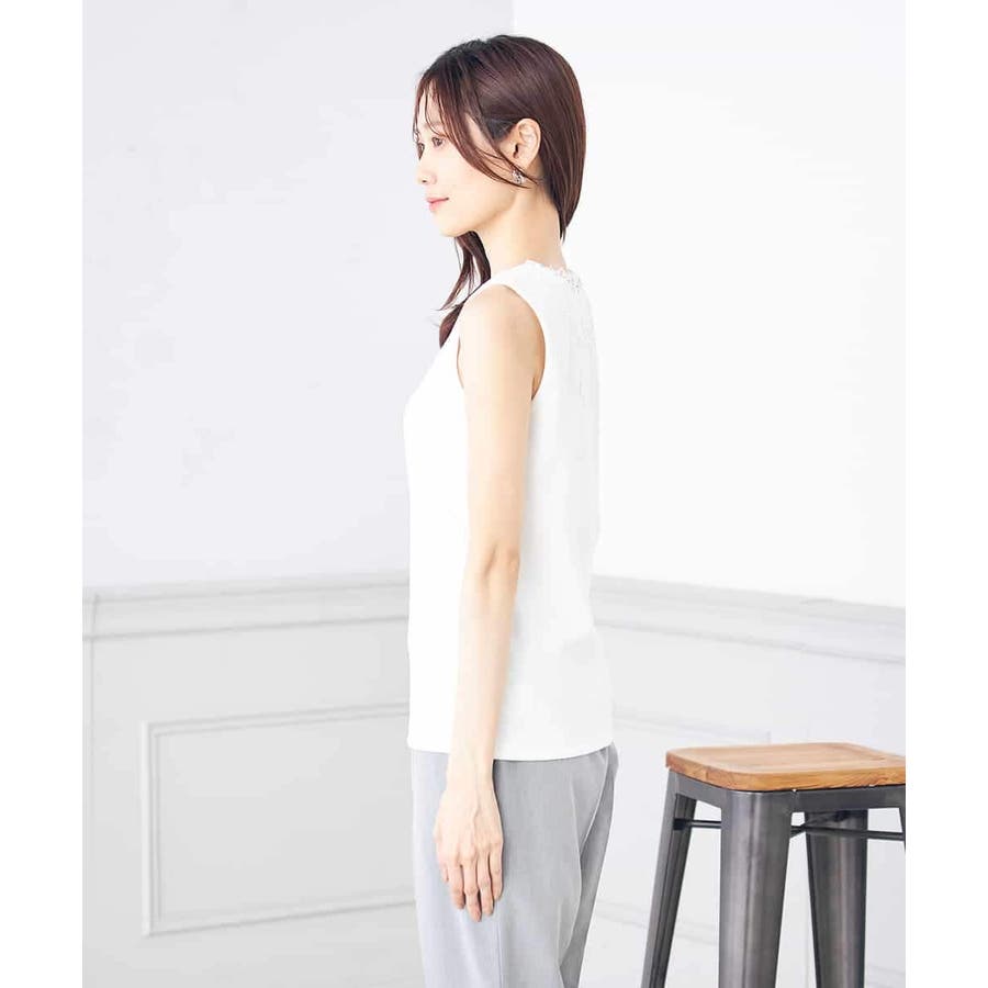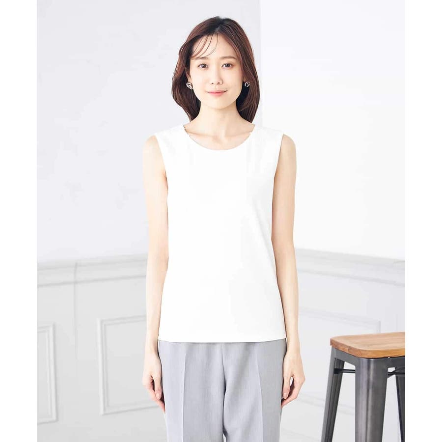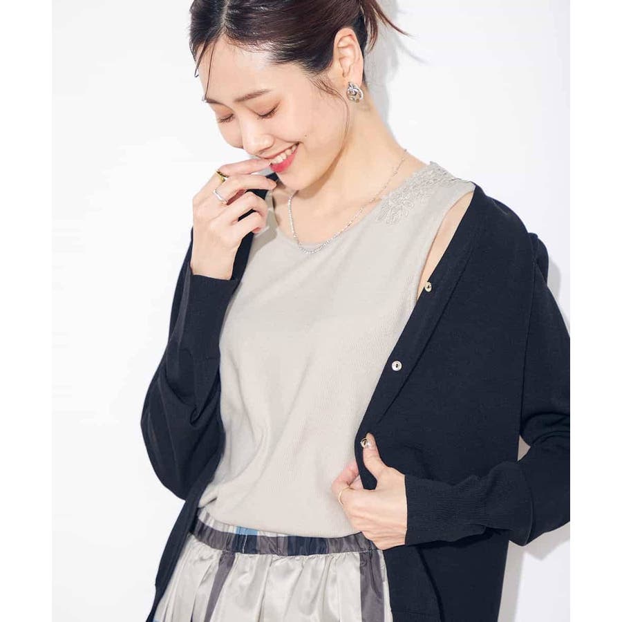 首元が広めのボートネックトップスやカーディガンのインナーとして活躍する一枚。