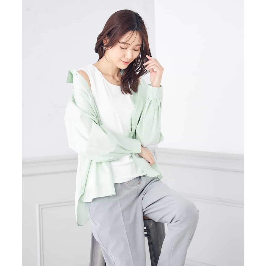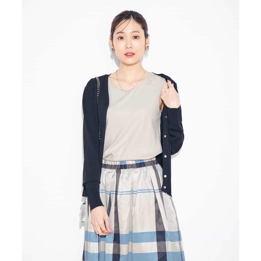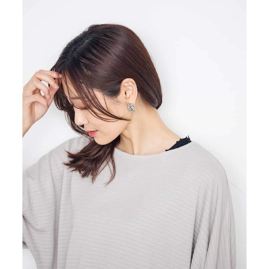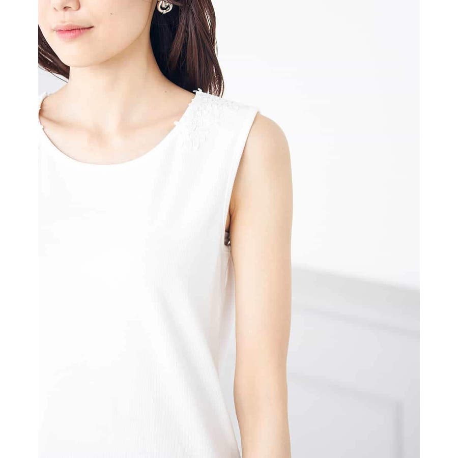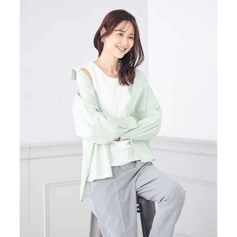首元が広めのボートネックトップスやカーディガンのインナーとして活躍する一枚。
