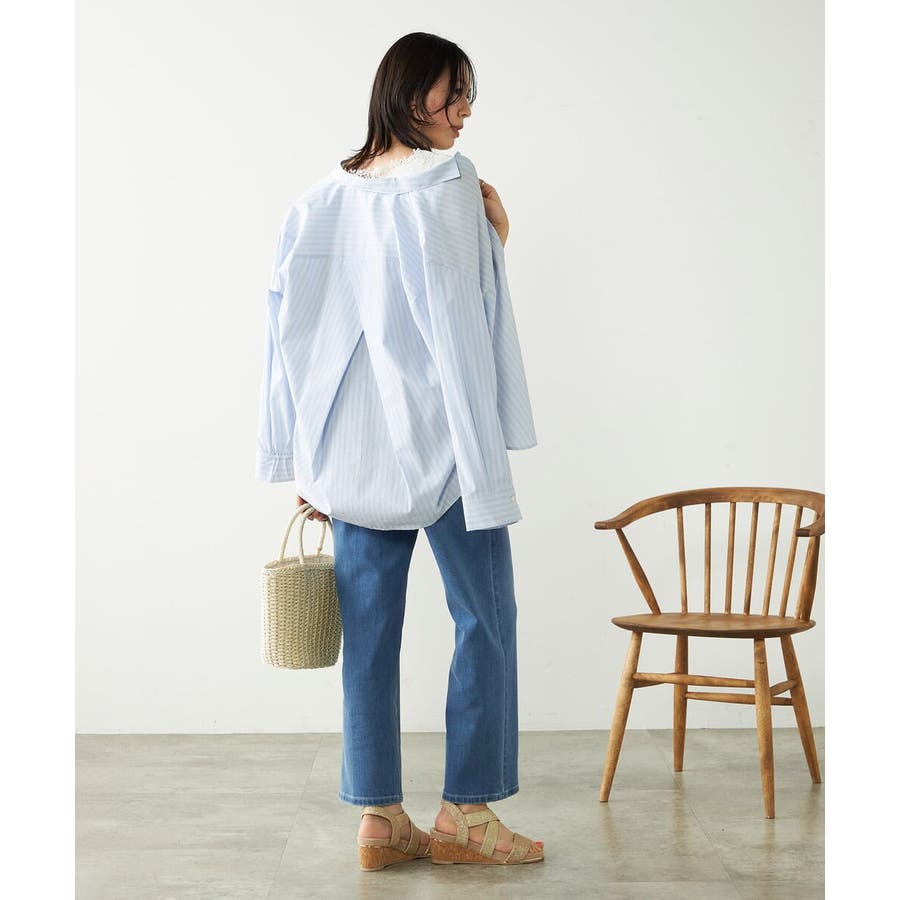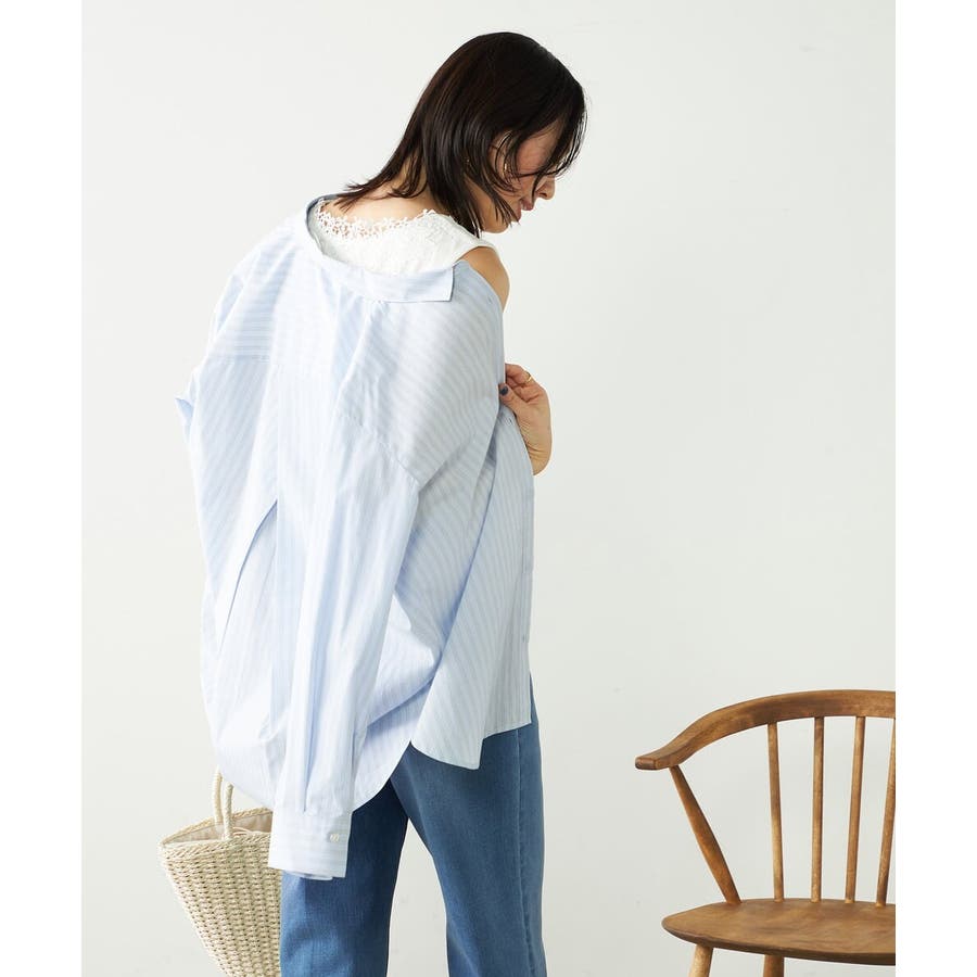 抜き衿シャツや首回りが広めのボートネックトップスに合わせるのがオススメです