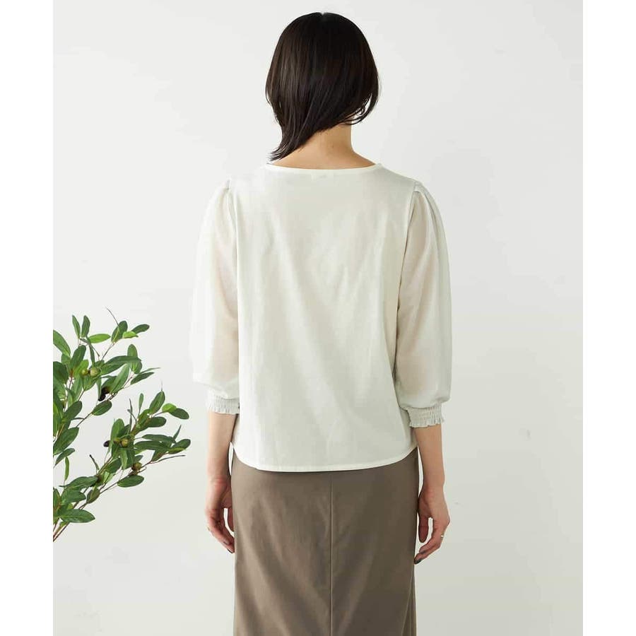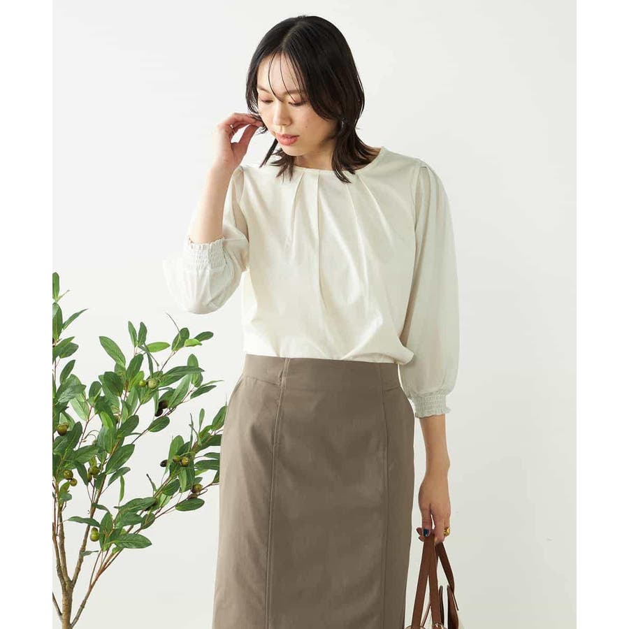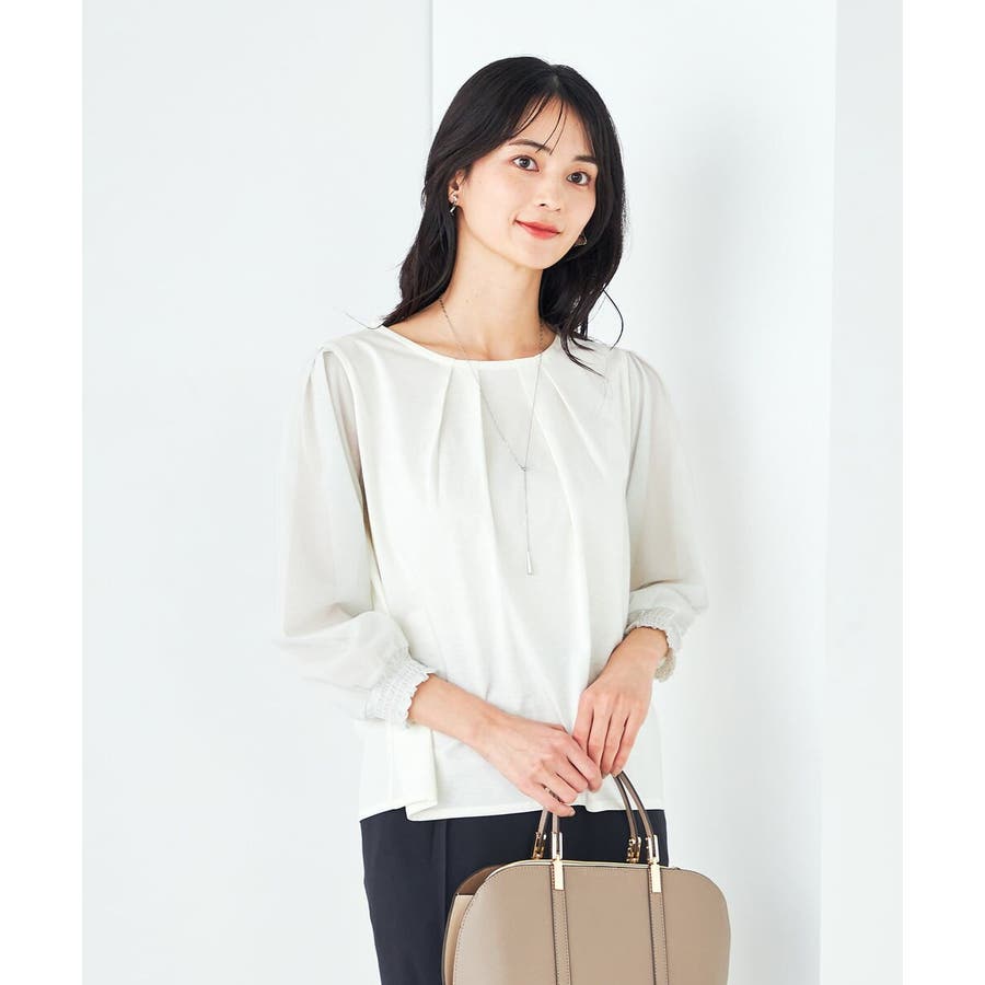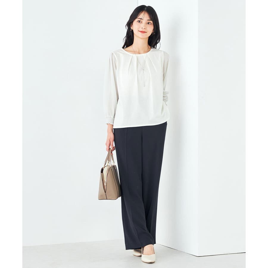 ・ブラウス見えするカットソー素材で着心地もお手入れもらくちん