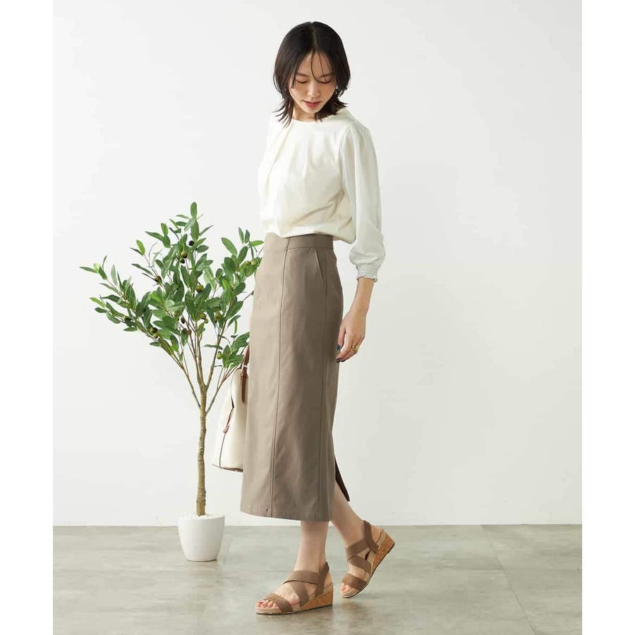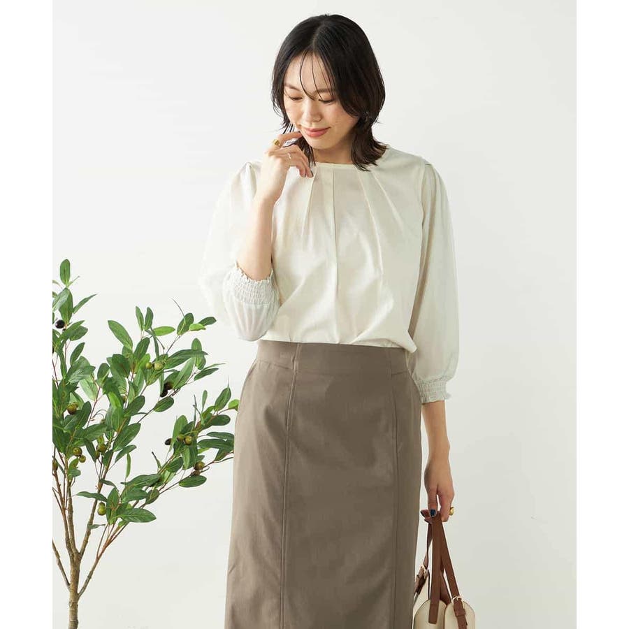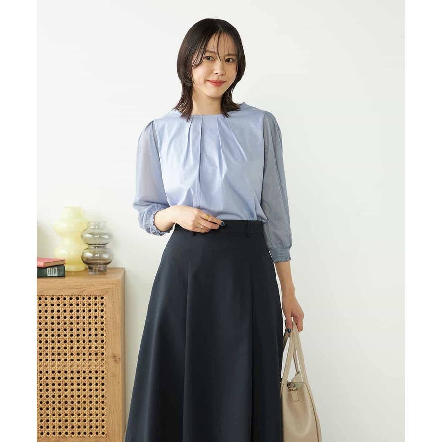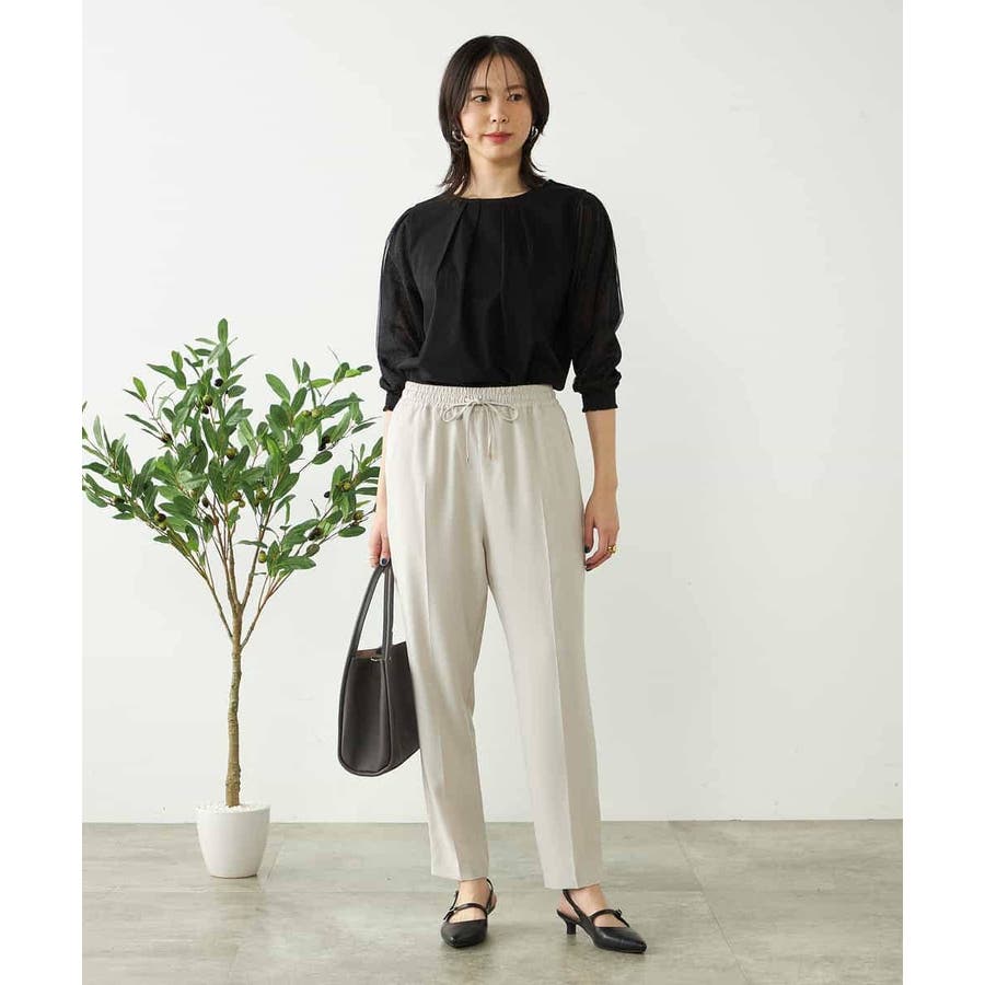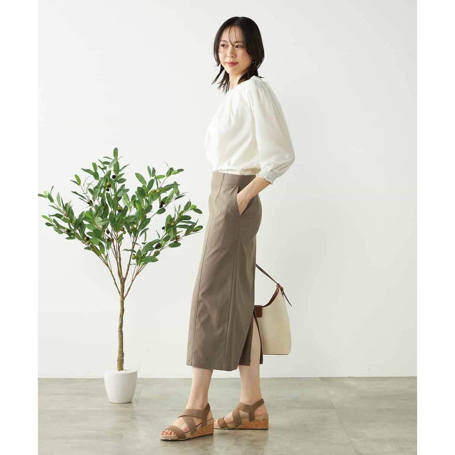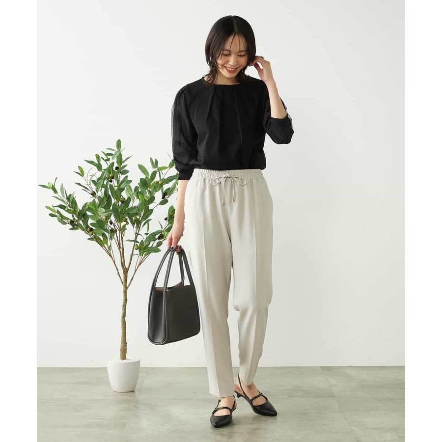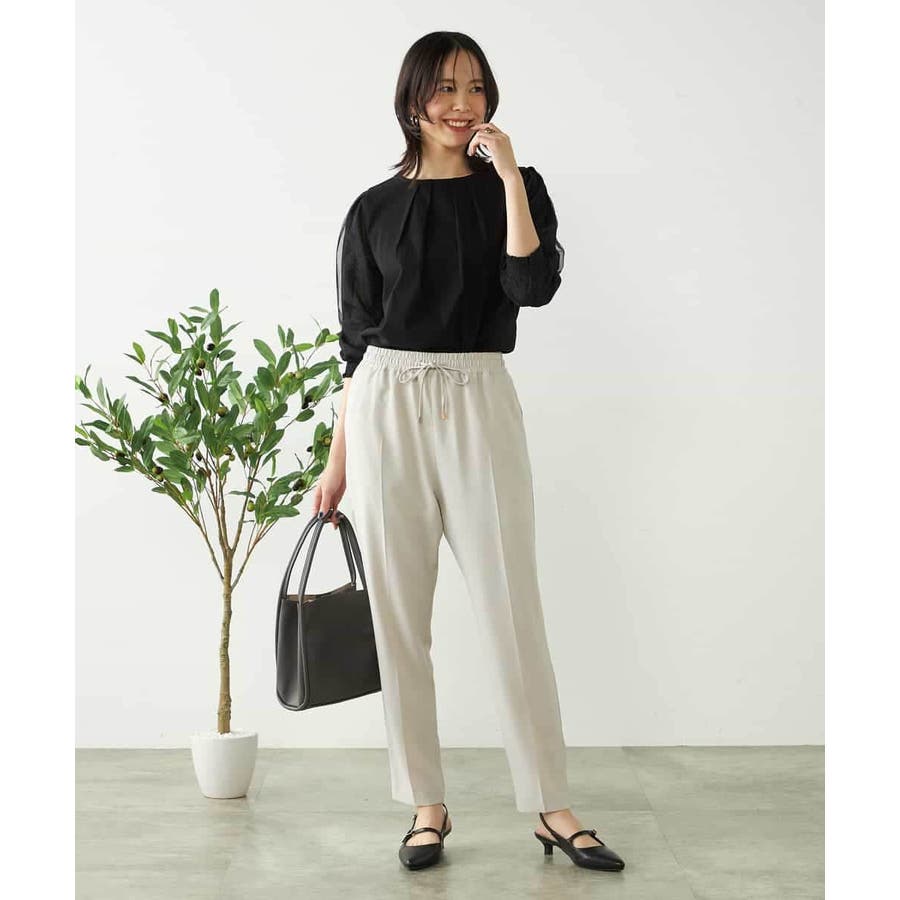 テーパードパンツやフレアスカートなどきれいめボトム合わせで通勤スタイルに。
