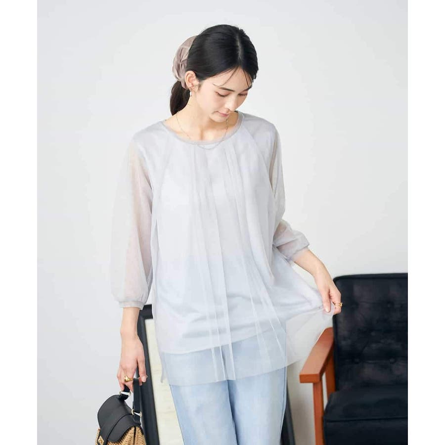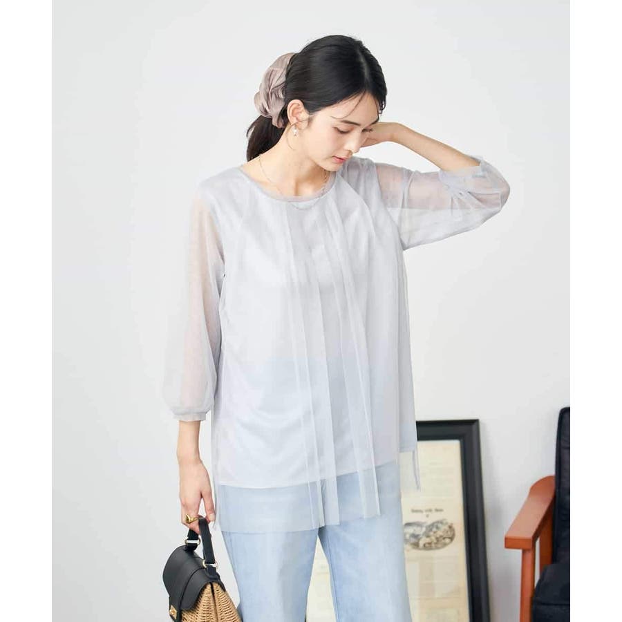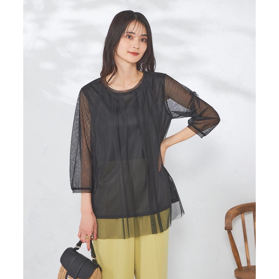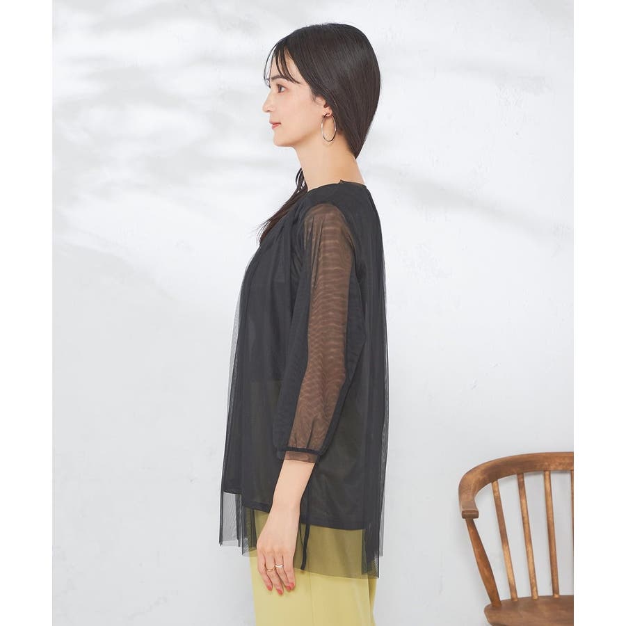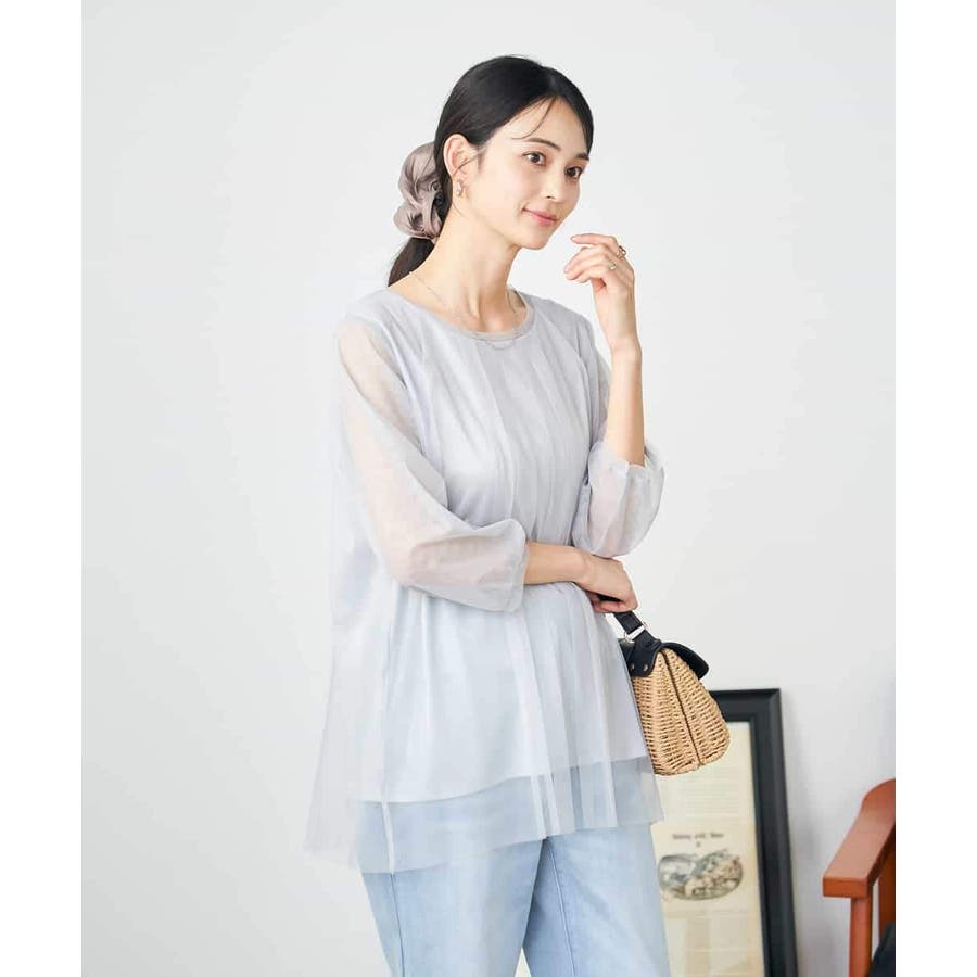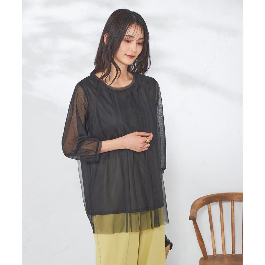 ・カットソーにチュールを重ねたブラウスライクなカットソー