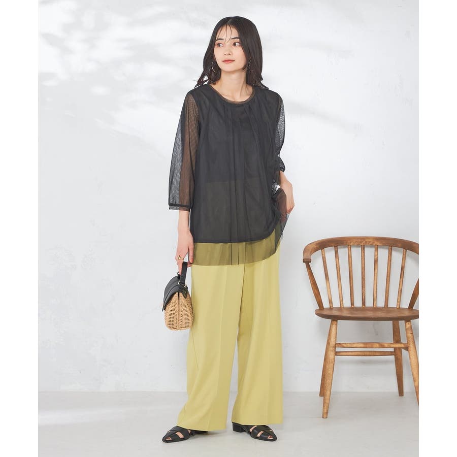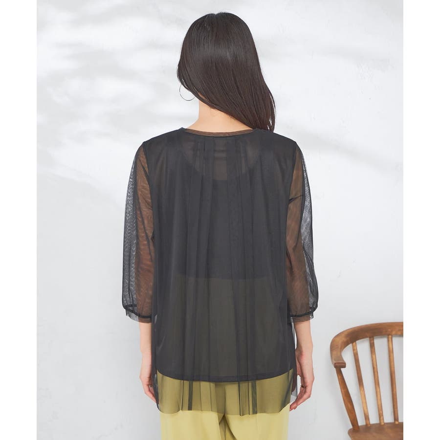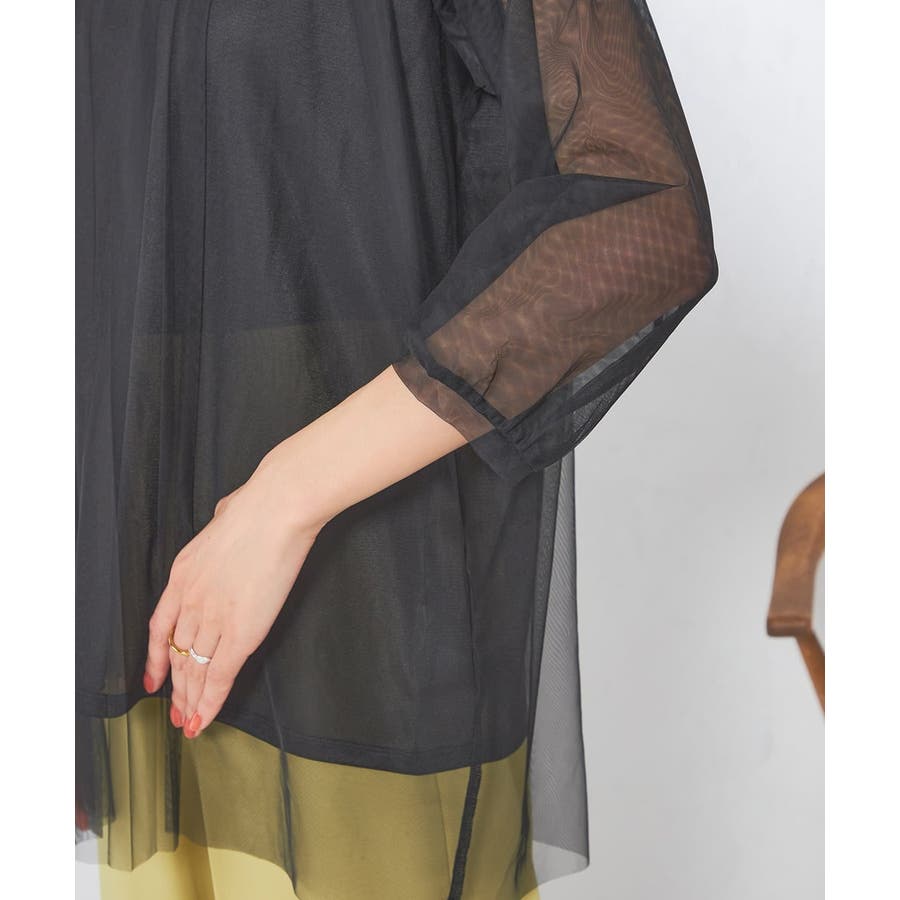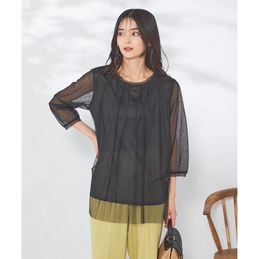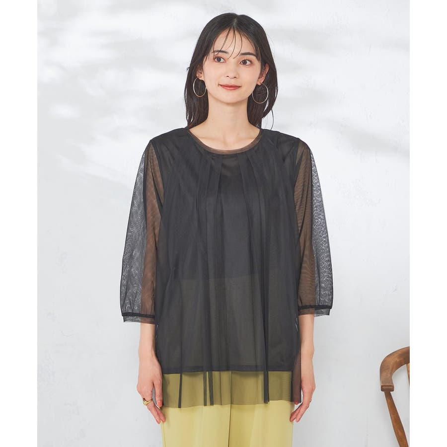 ・カットソーにチュールを重ねたブラウスライクなカットソー