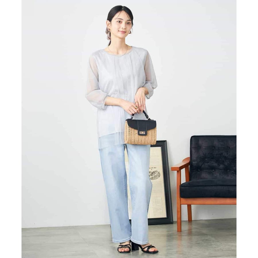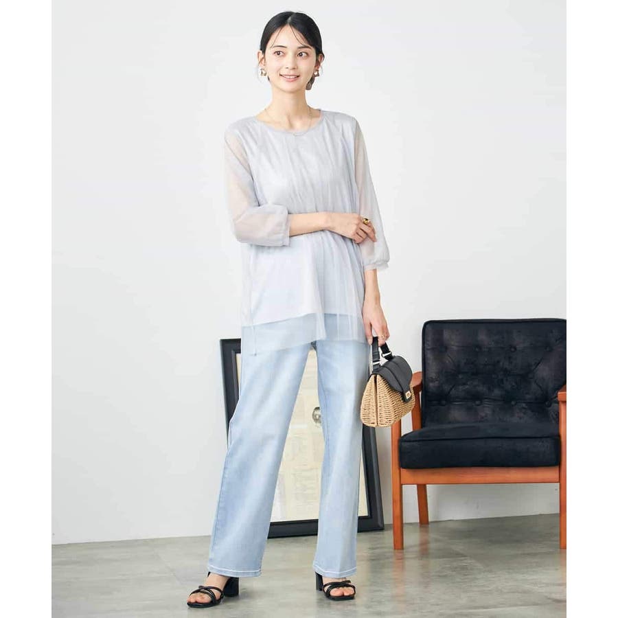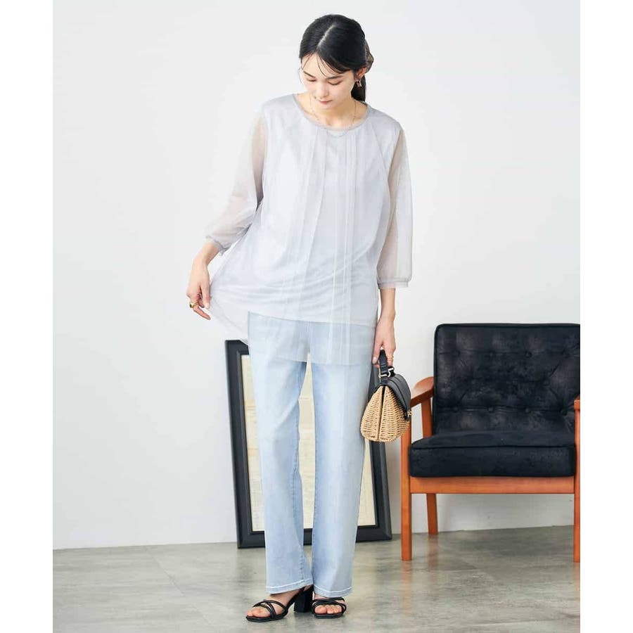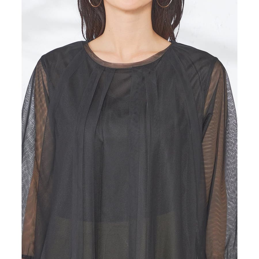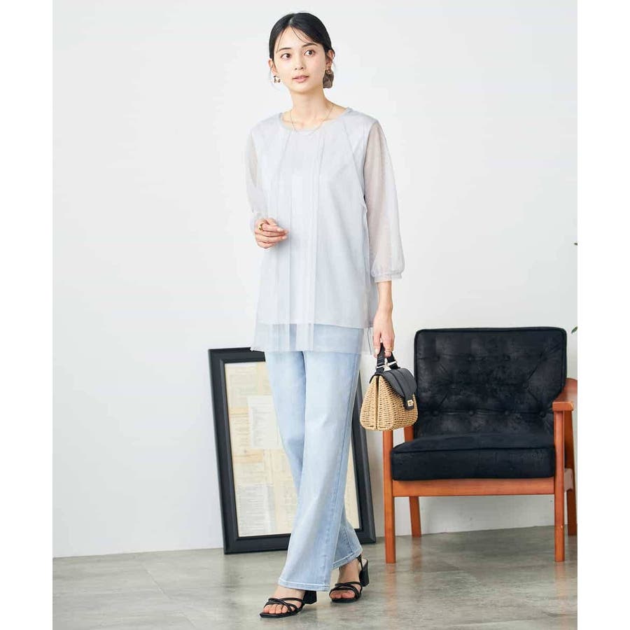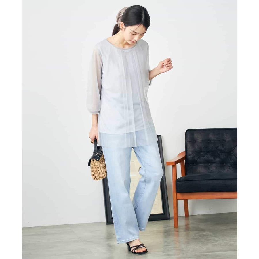 ・カットソーにチュールを重ねたブラウスライクなカットソー