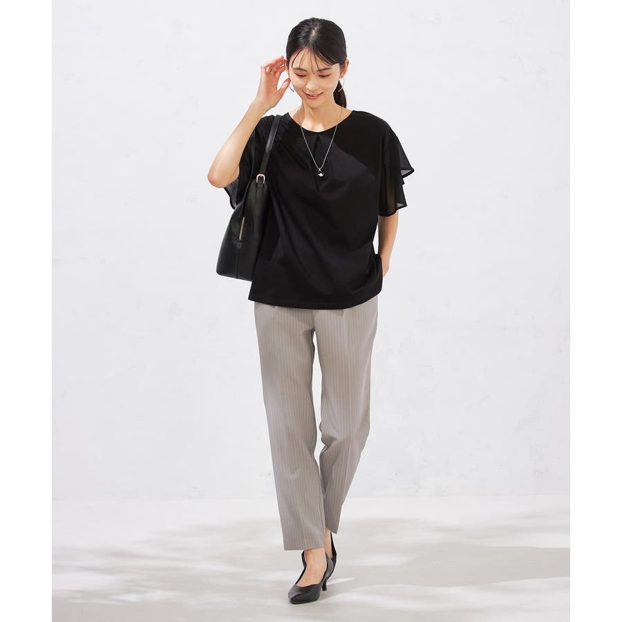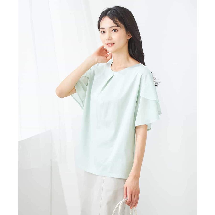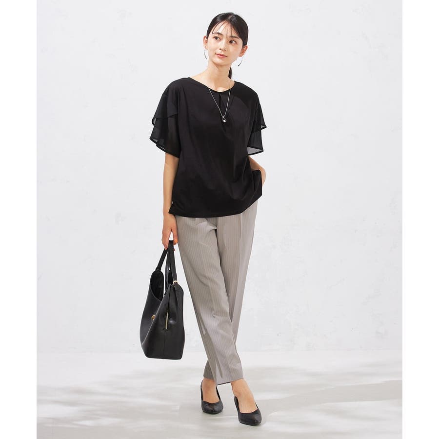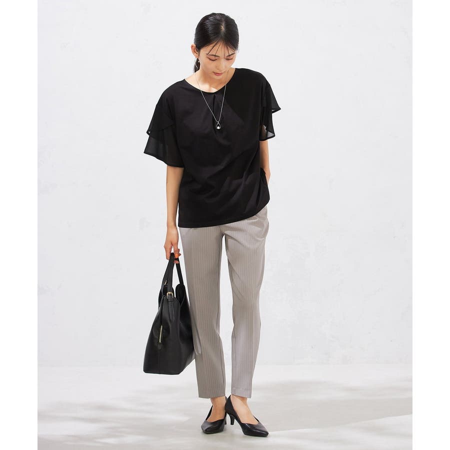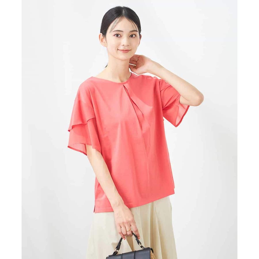 ブラウス見えカットソーなので、暑さが厳しい真夏も快適にお洒落を楽しめる一枚は、お出かけから通勤まで活躍間違いなし。