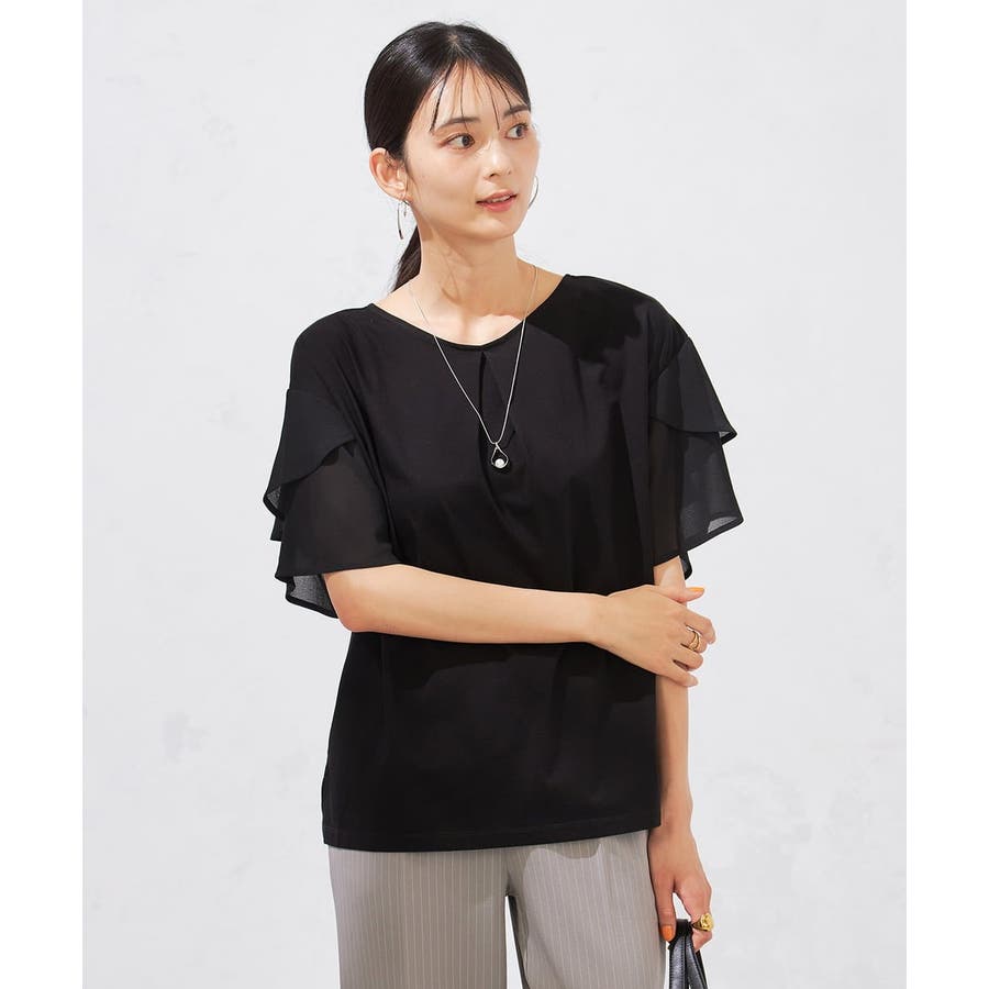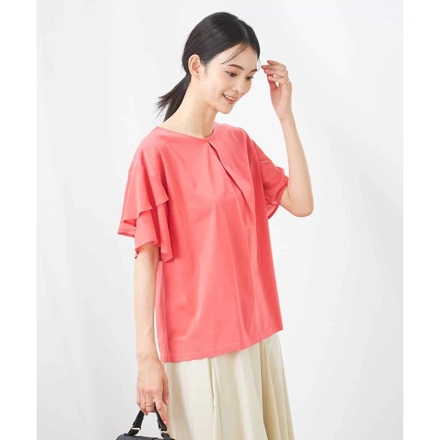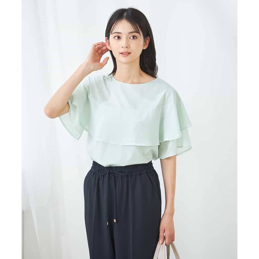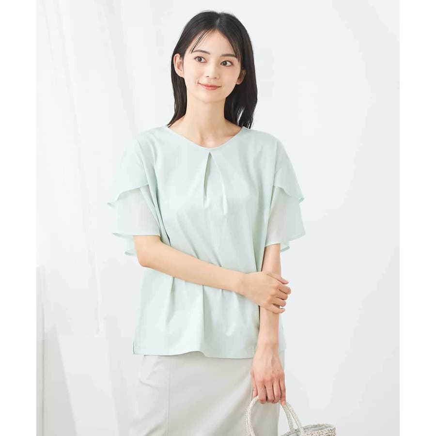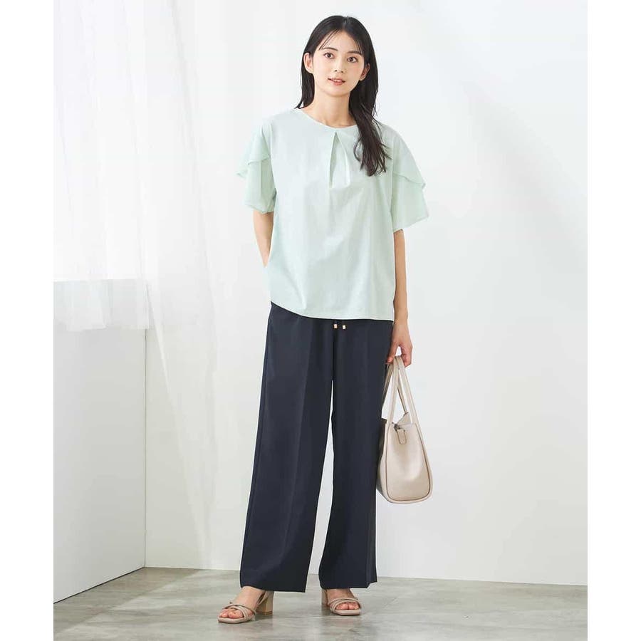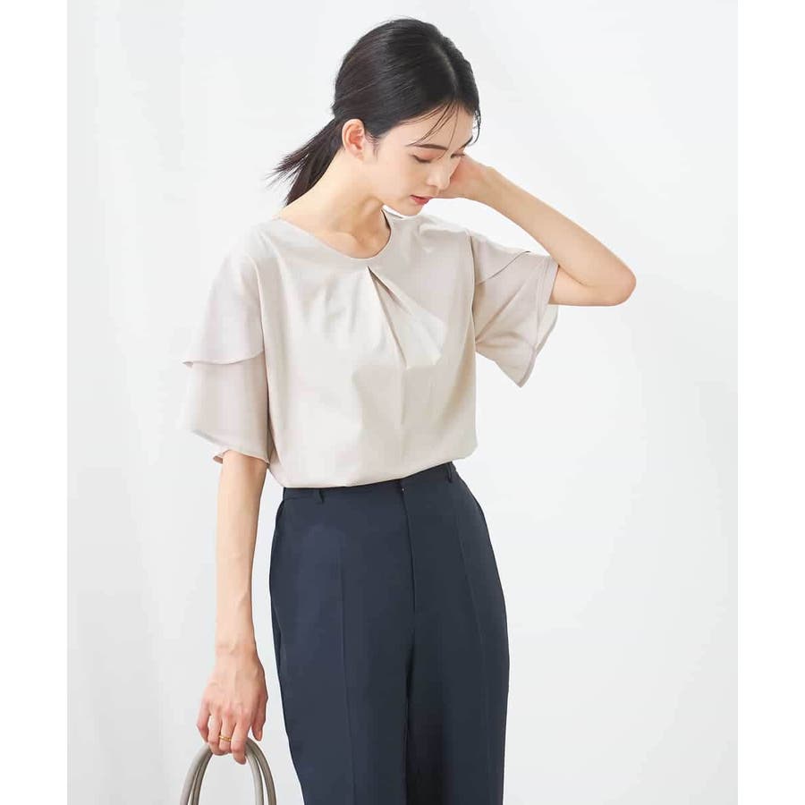 ブラウス見えカットソーなので、暑さが厳しい真夏も快適にお洒落を楽しめる一枚は、お出かけから通勤まで活躍間違いなし。