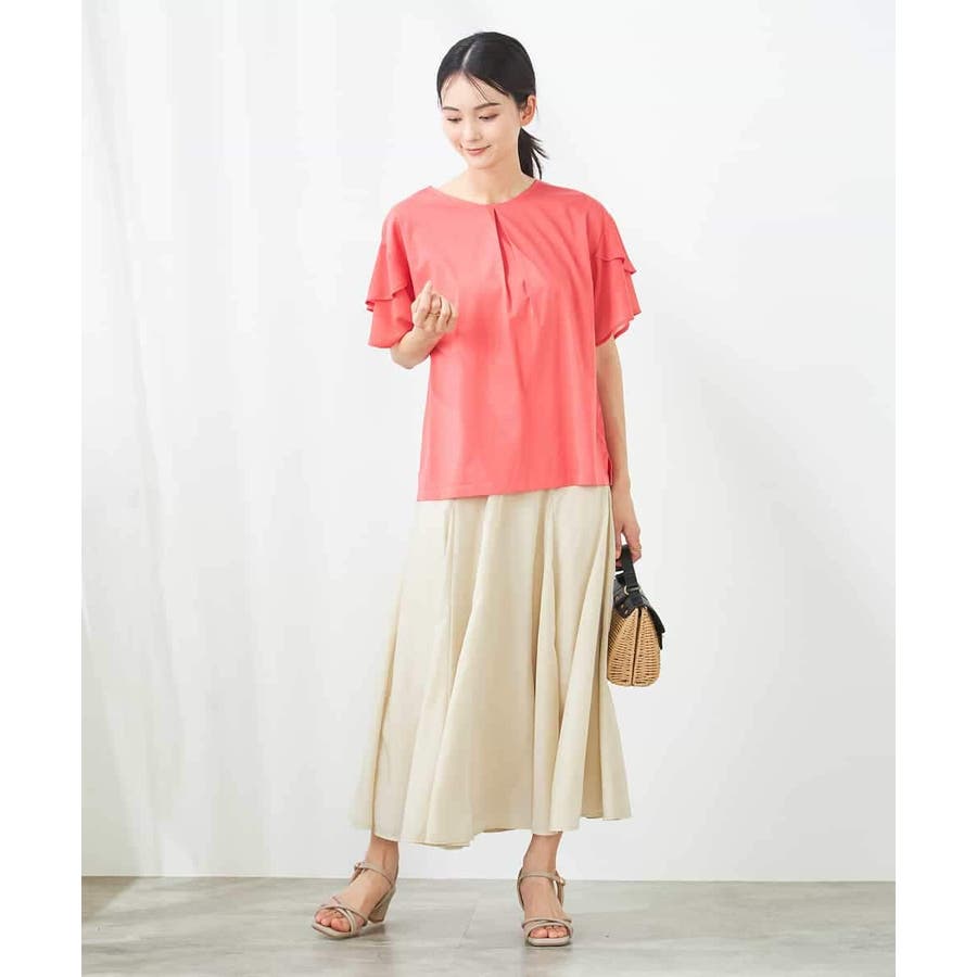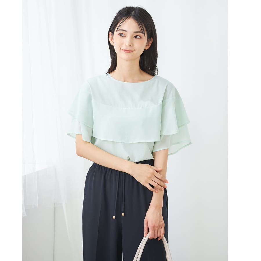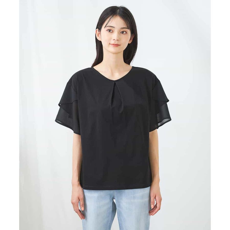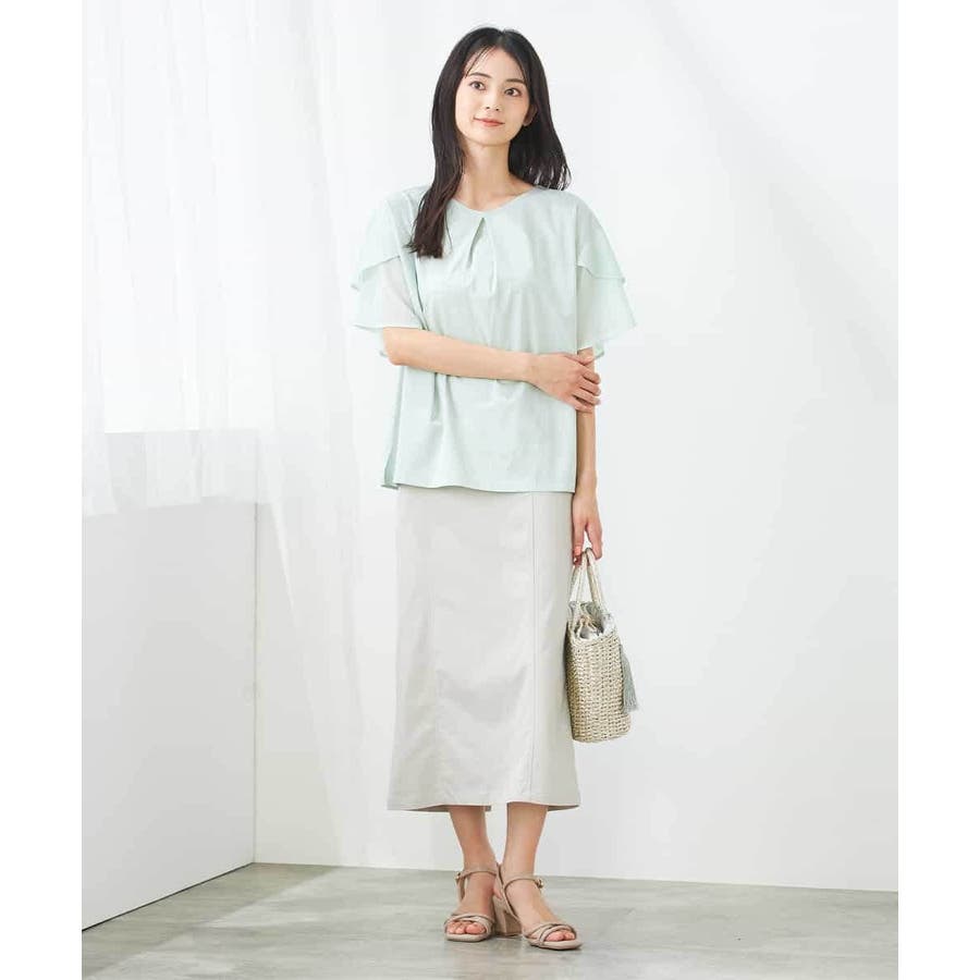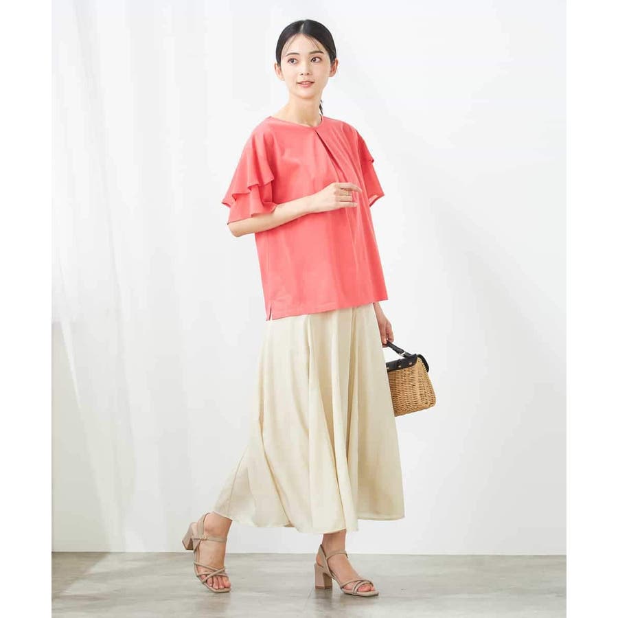 ブラウス見えカットソーなので、暑さが厳しい真夏も快適にお洒落を楽しめる一枚は、お出かけから通勤まで活躍間違いなし。