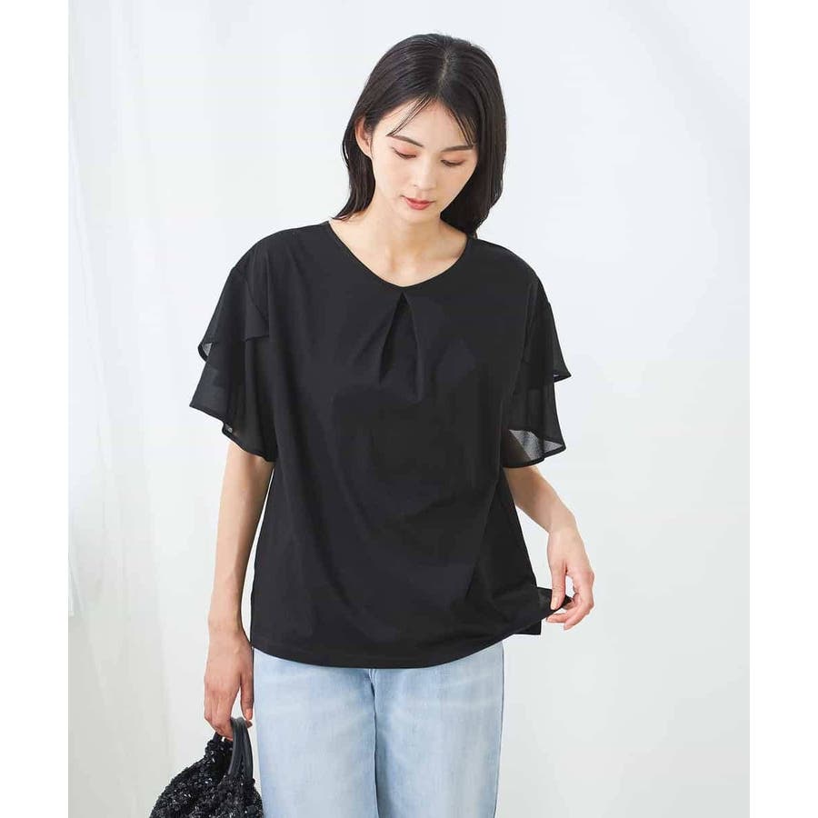 見栄えだけでなく、接触冷感&UVカット付きの機能性がしっかりあるところも夏にうれしいトップスです。