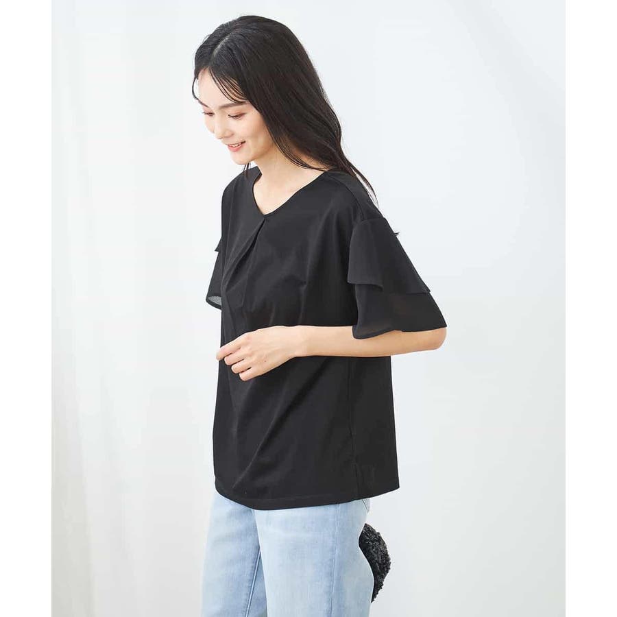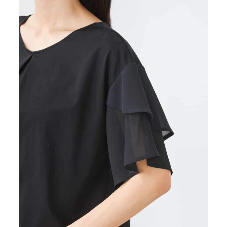 ・袖のシフォンが涼しげな浅いVネックタイプと