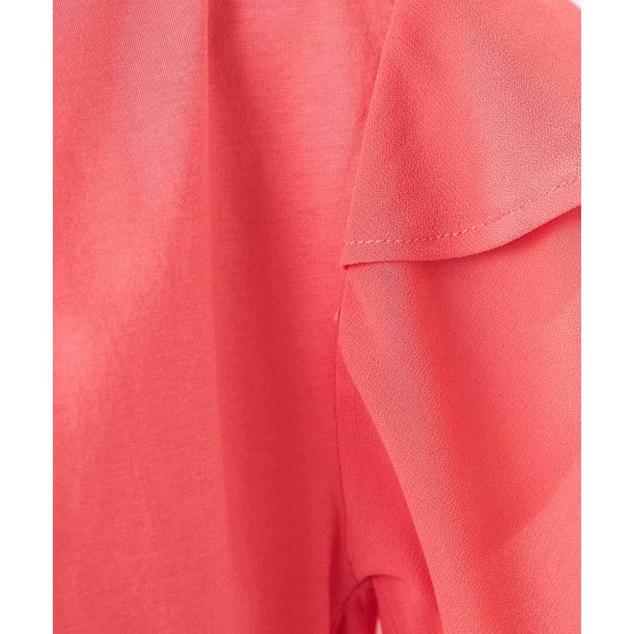 ・柔らかく落ち感のあるカットソーとシフォンのドッキングの華やかな一枚
