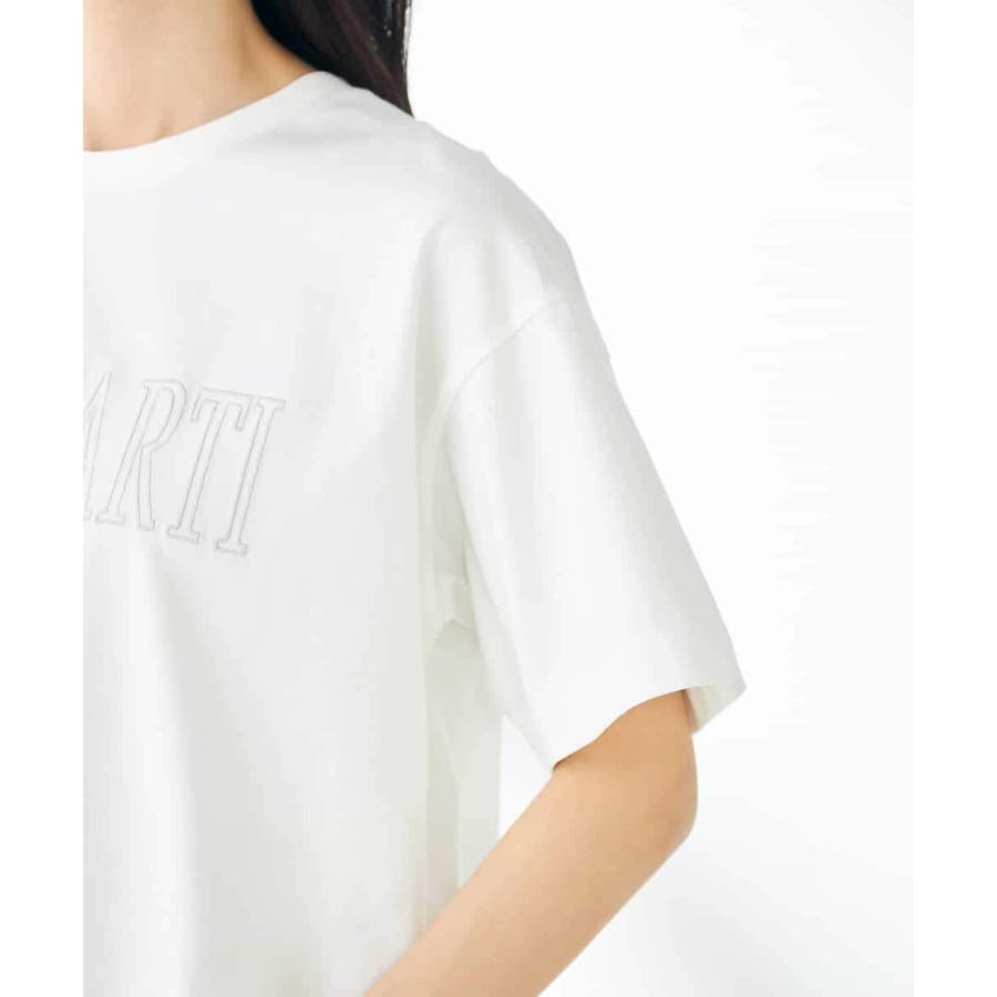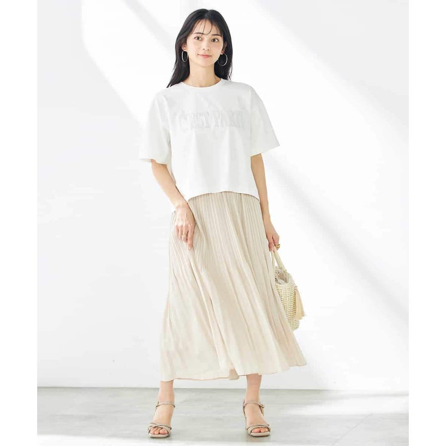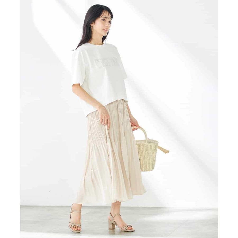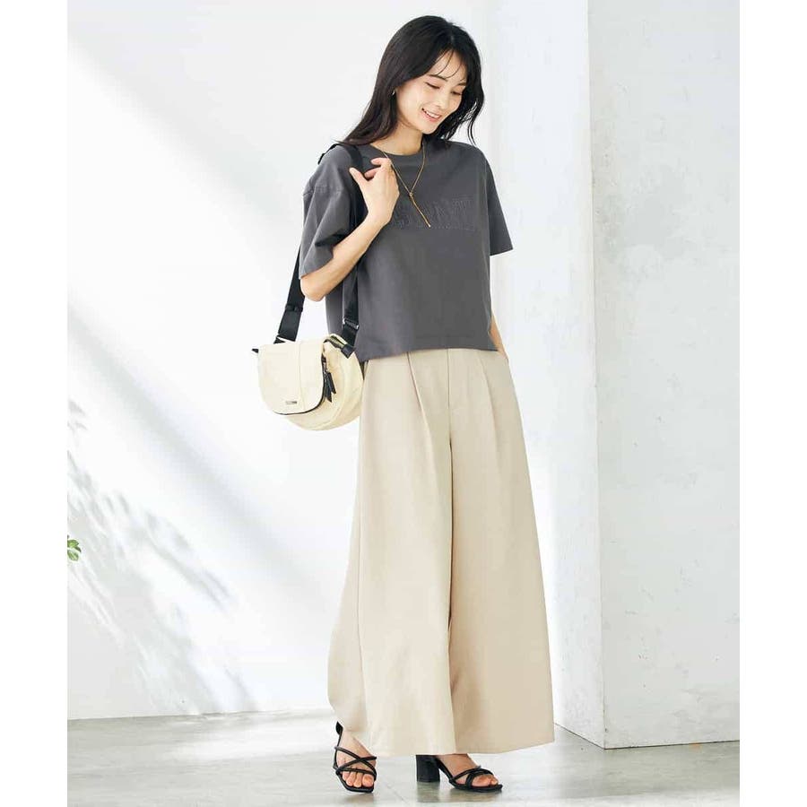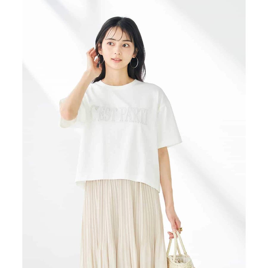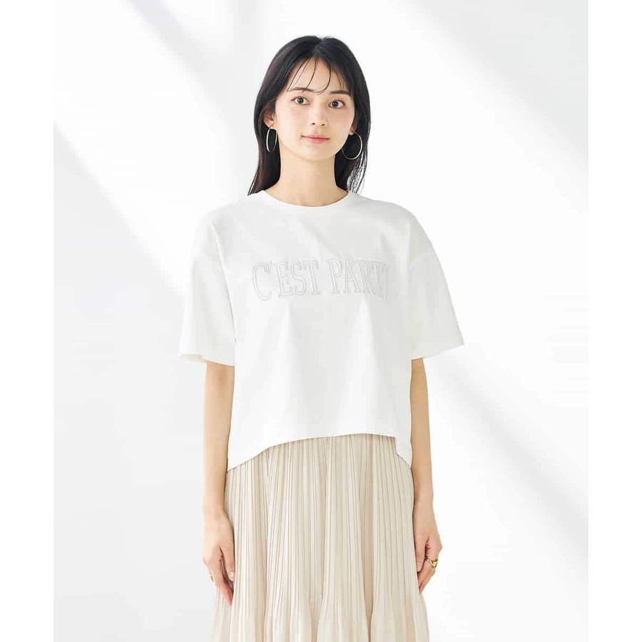 短すぎず長すぎないショート丈のTシャツはボトムを選ばず着用できます。