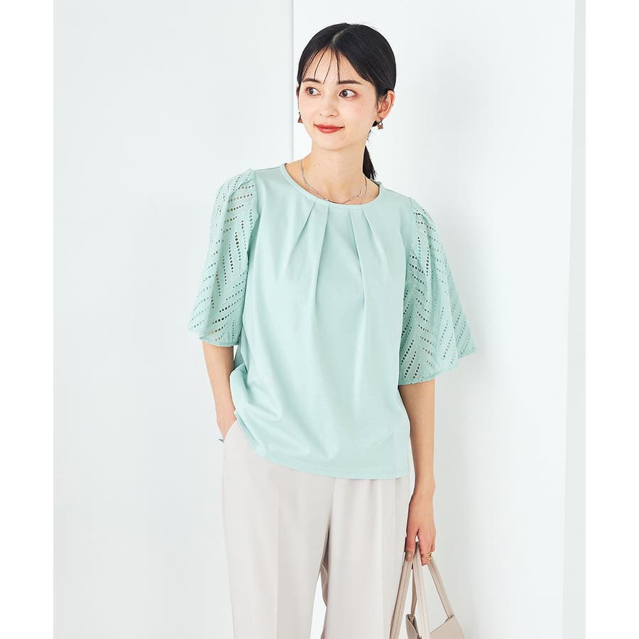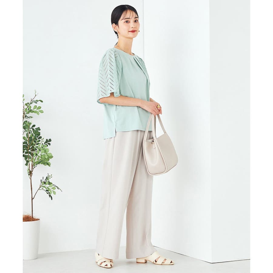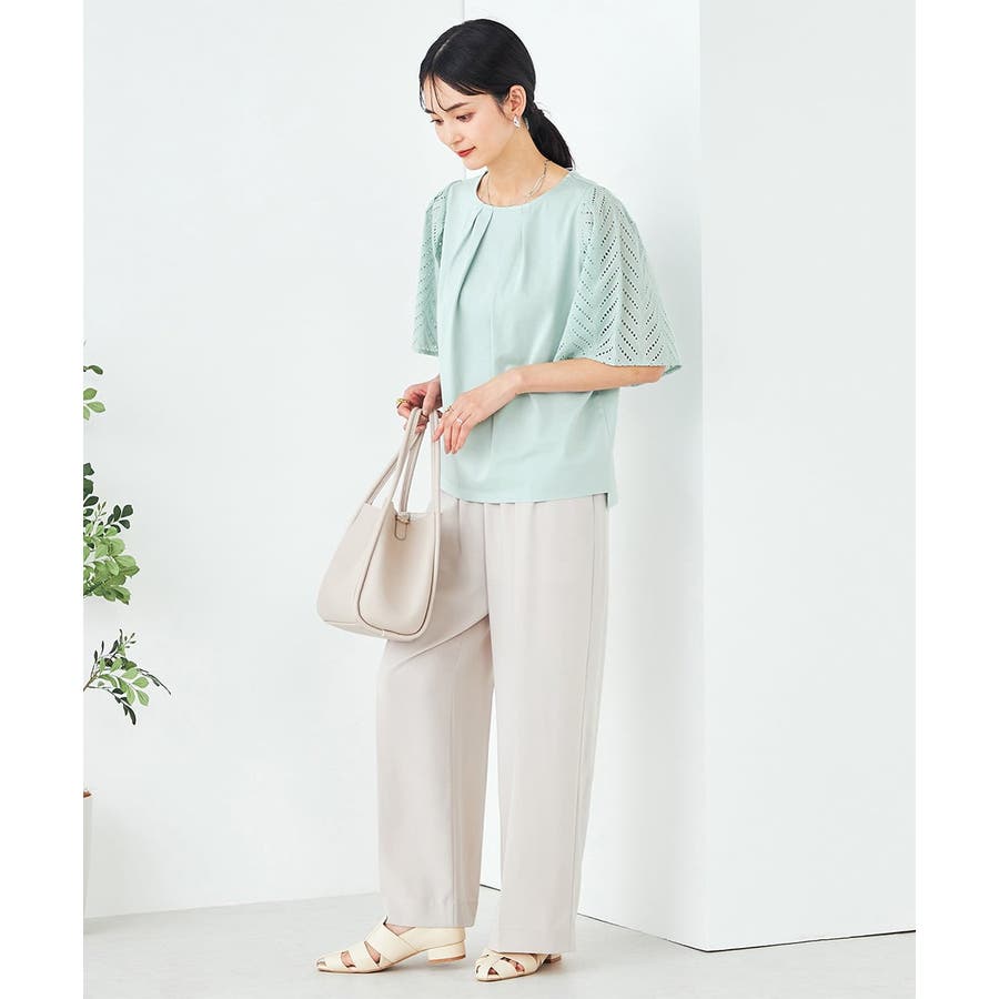 ・ブラウス見えするきれいな表面感のカットソー素材できちんと感のある1枚