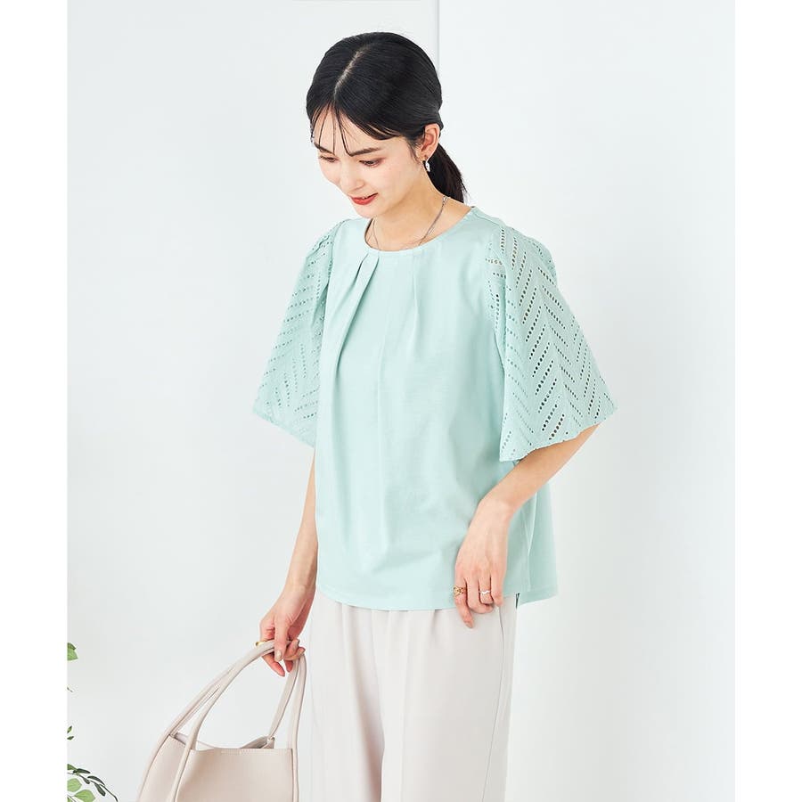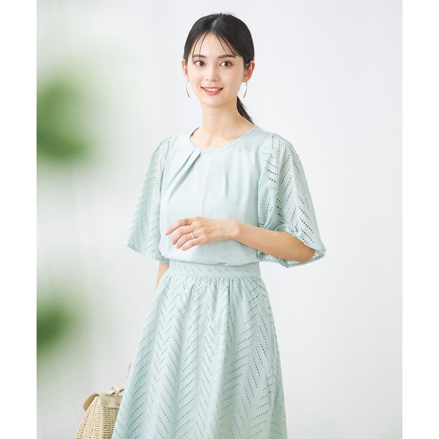 ・袖のフレアシルエットが女性らしく二の腕もふんわりカバー