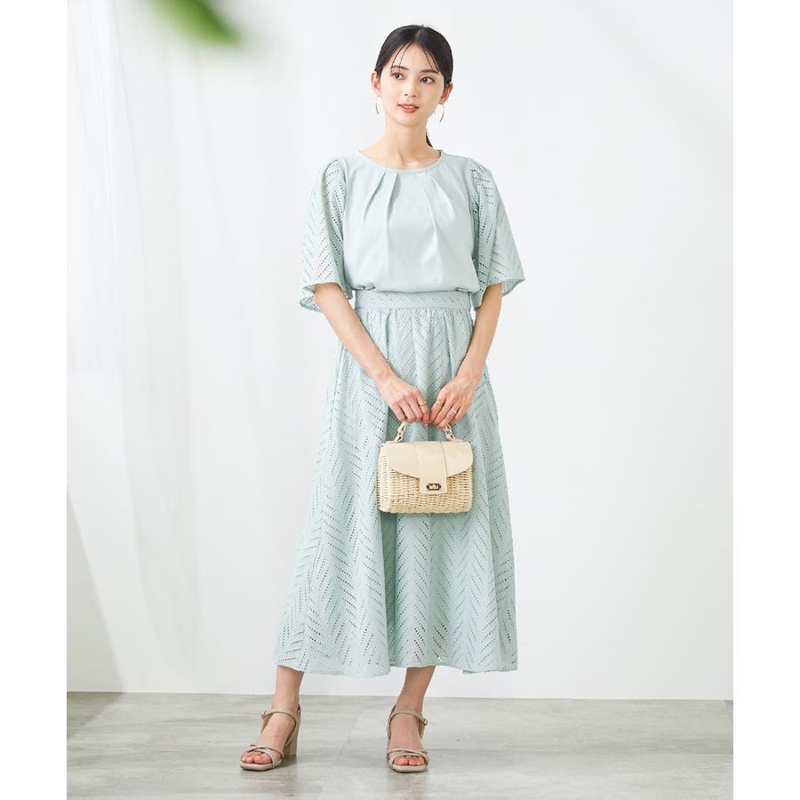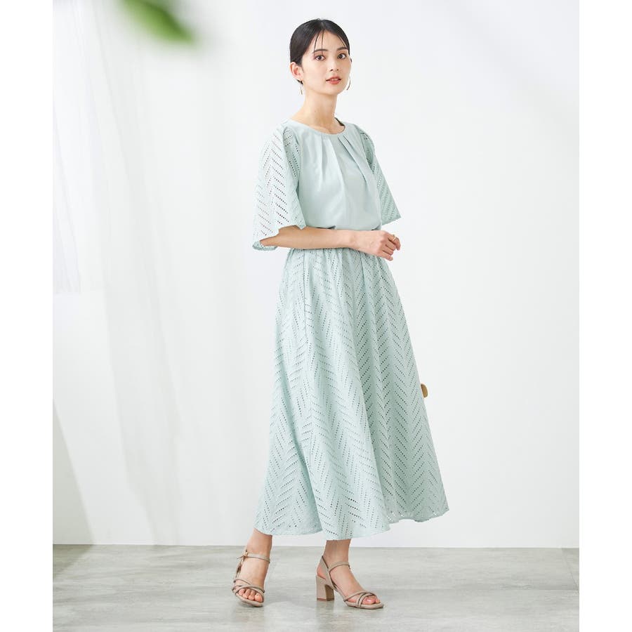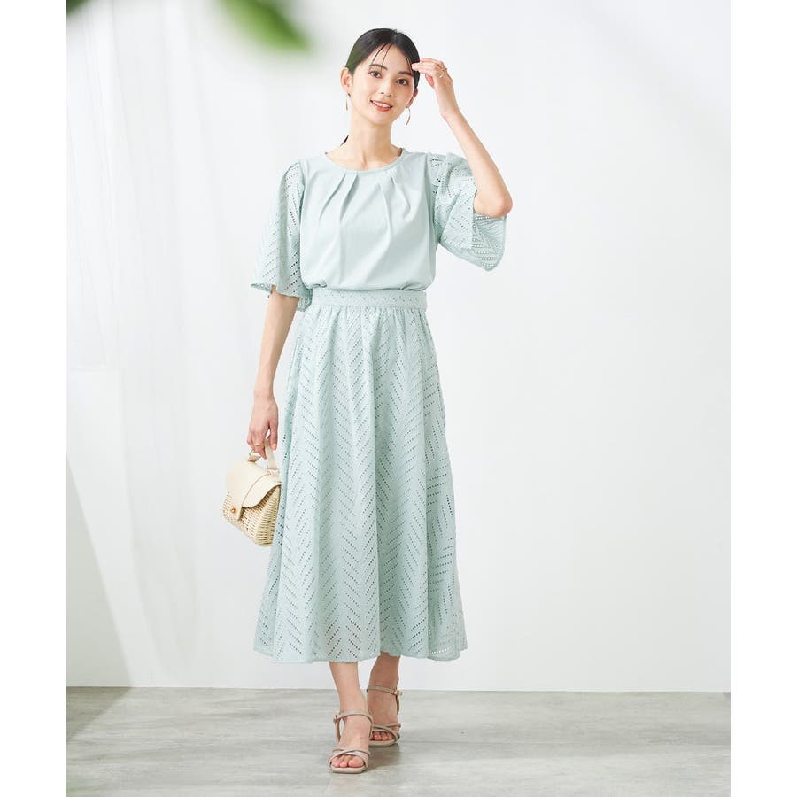 袖のレースと同素材を使用したスカート()とのセットアップ着用がおすすめ。