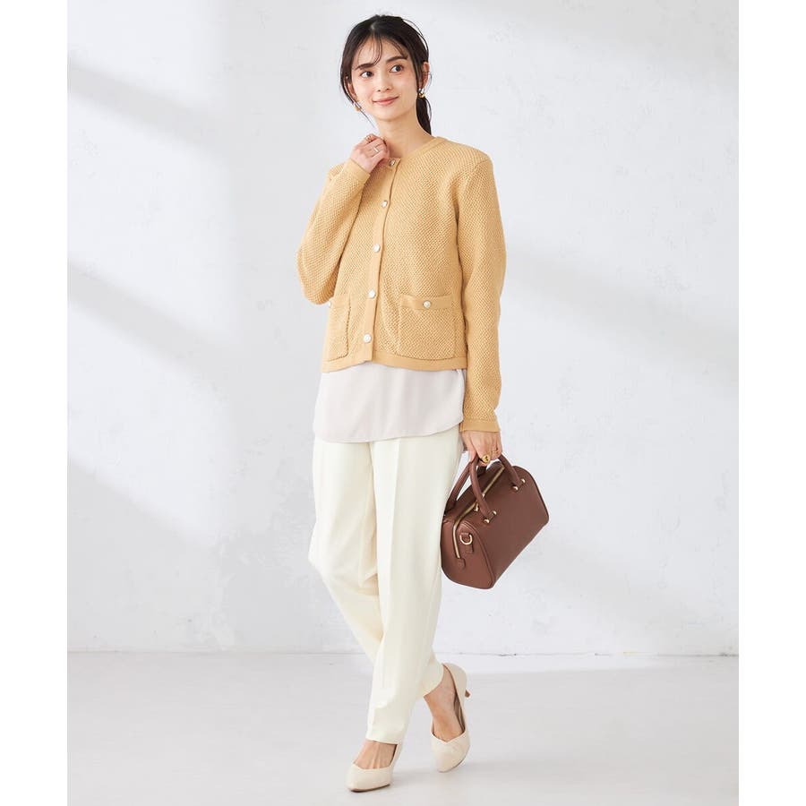 裾部分をのぞかせるだけで旬の重ね着スタイルが完成します。