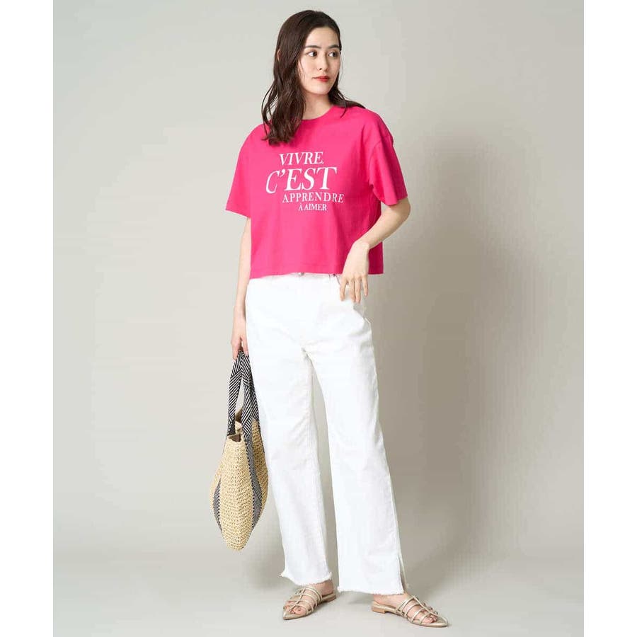 ・短いけど短すぎない大人のためのクロップドロゴTシャツ