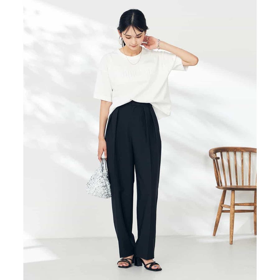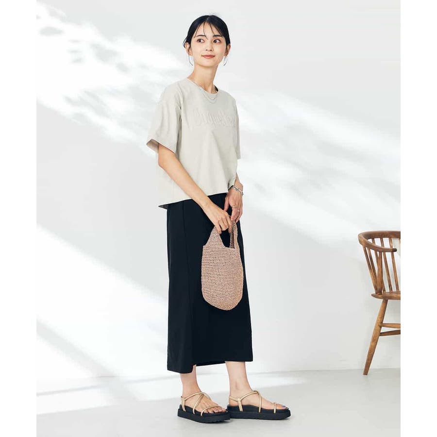 短すぎず長すぎないショート丈のTシャツはボトムを選ばず着用できます。