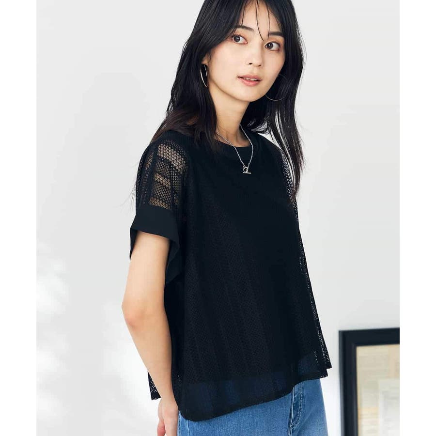 幾何レースレイヤードトップス