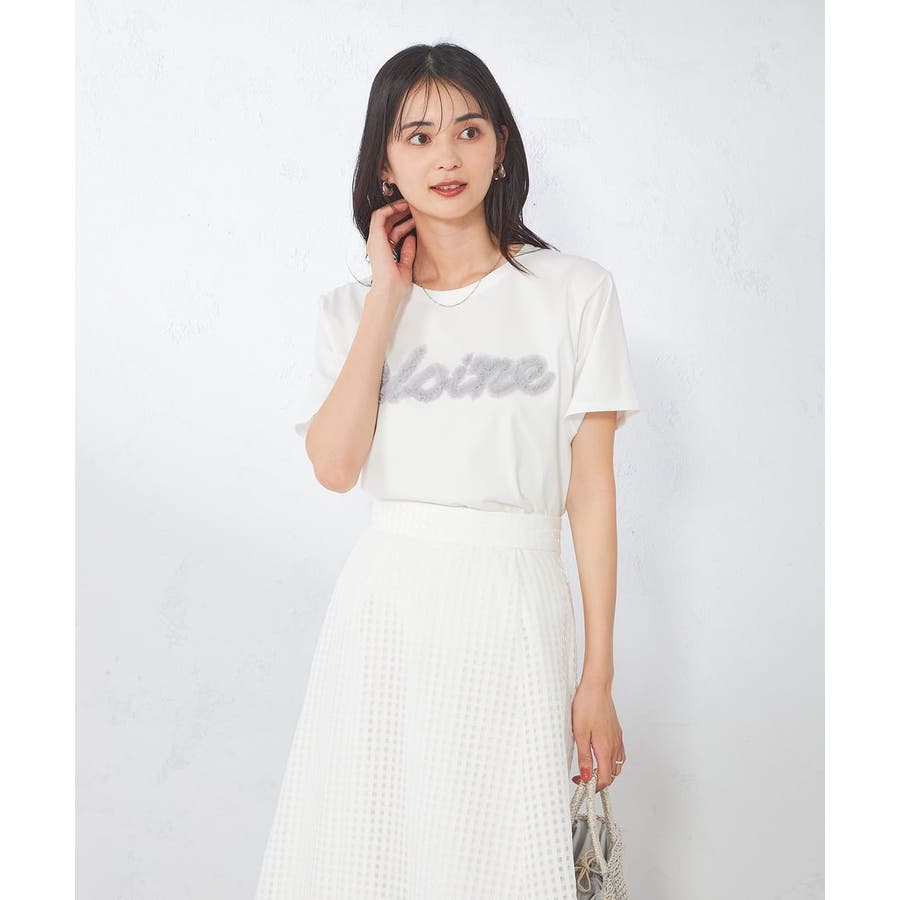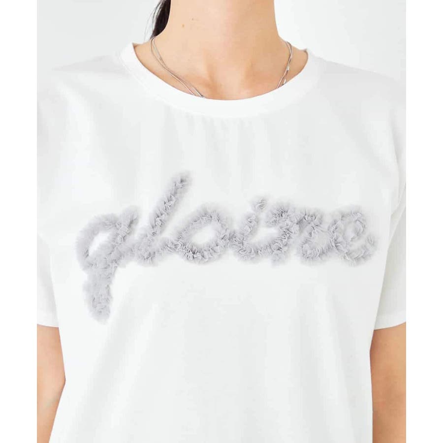 ・ベーシックなサイズのTシャツにチュールフリルの刺繍を施したロゴTシャツ
