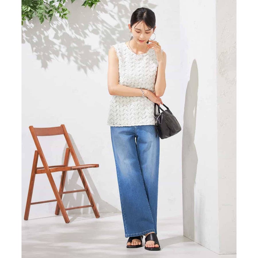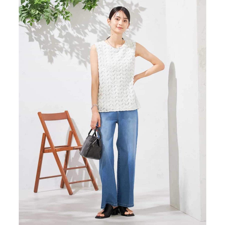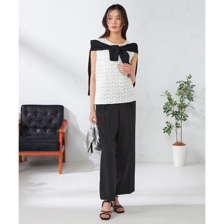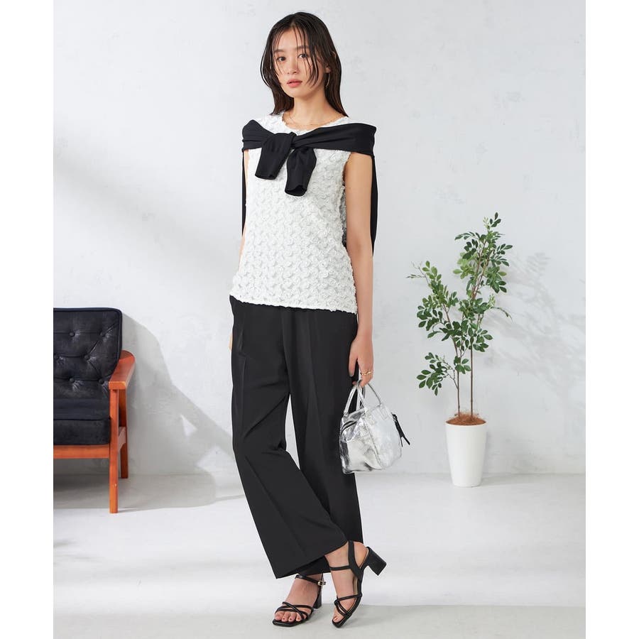 ・フェミニンなバラモチーフですが、ノースリーブでラフ見えし大人な着こなしが叶います