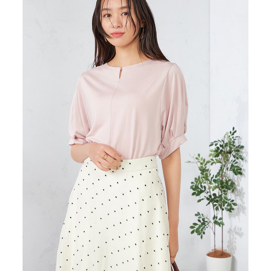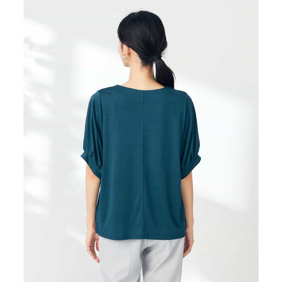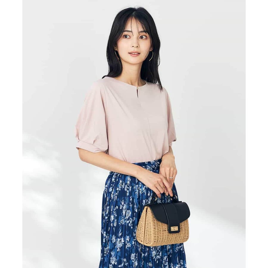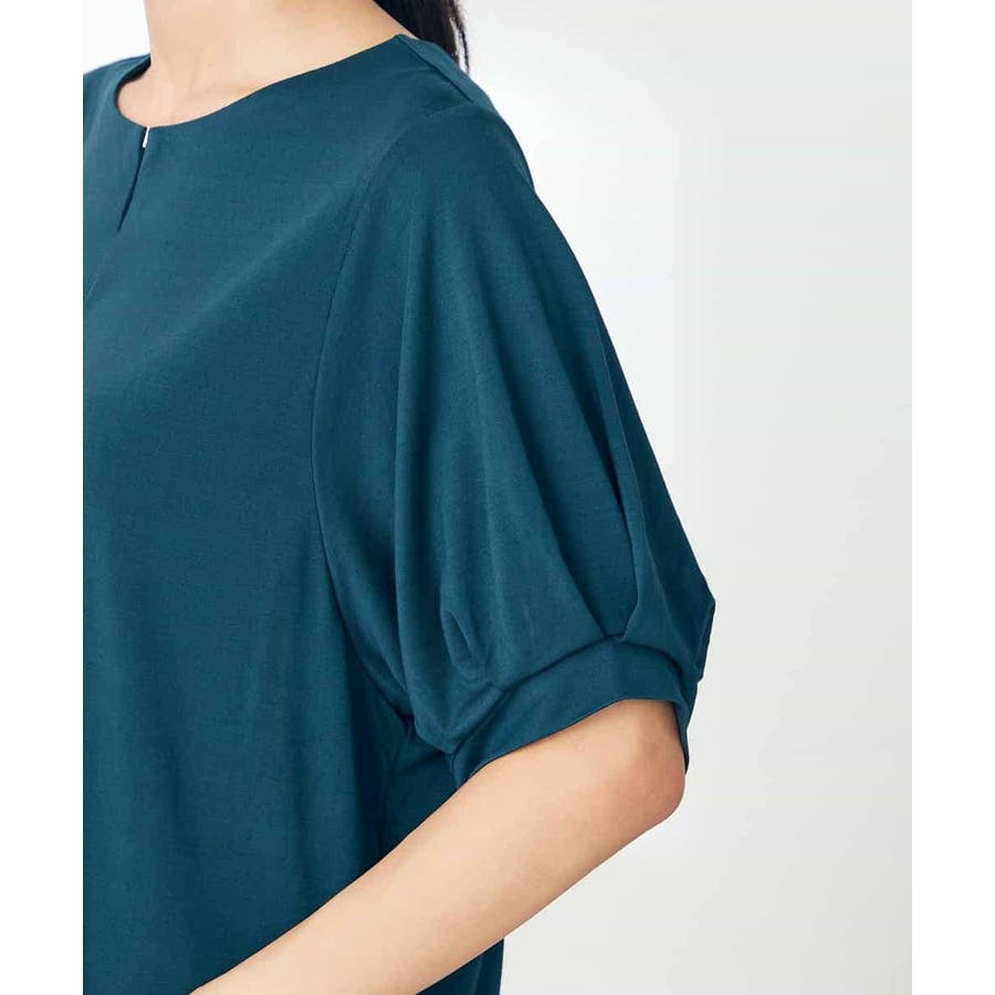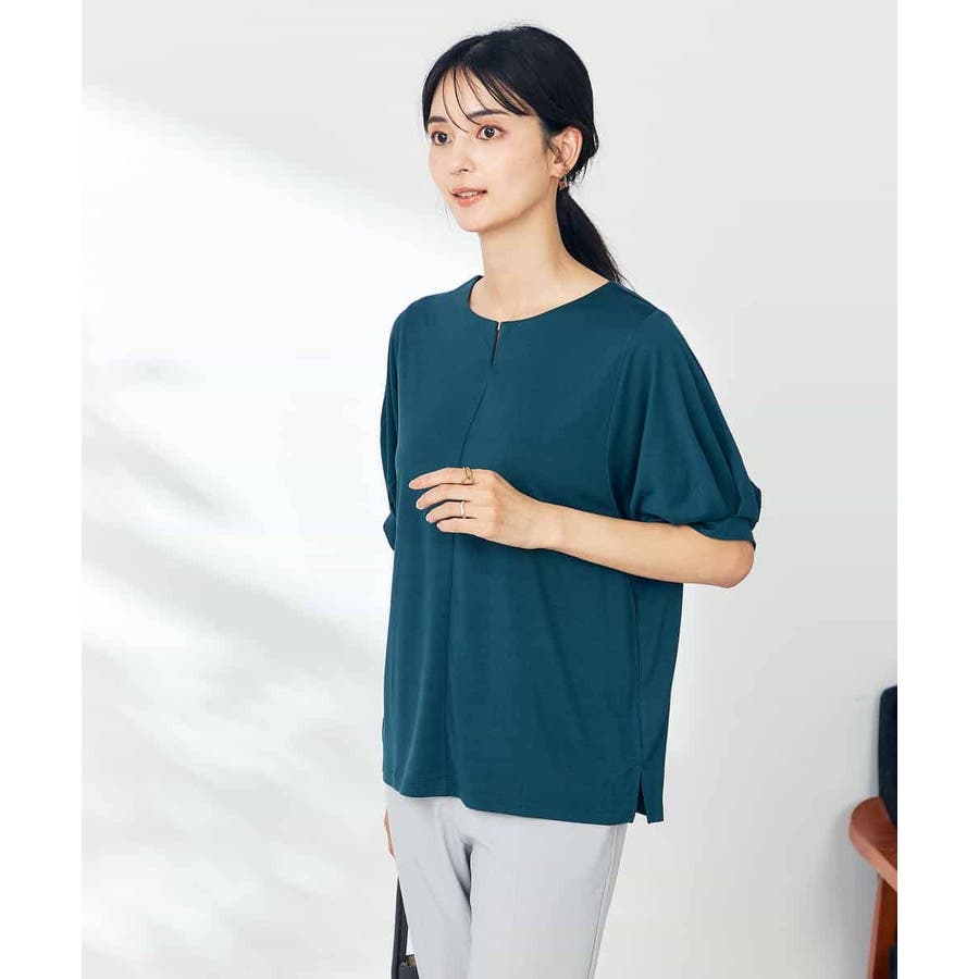 【接触冷感/UVカット/吸水速乾】チャームネックパフスリーブトップス