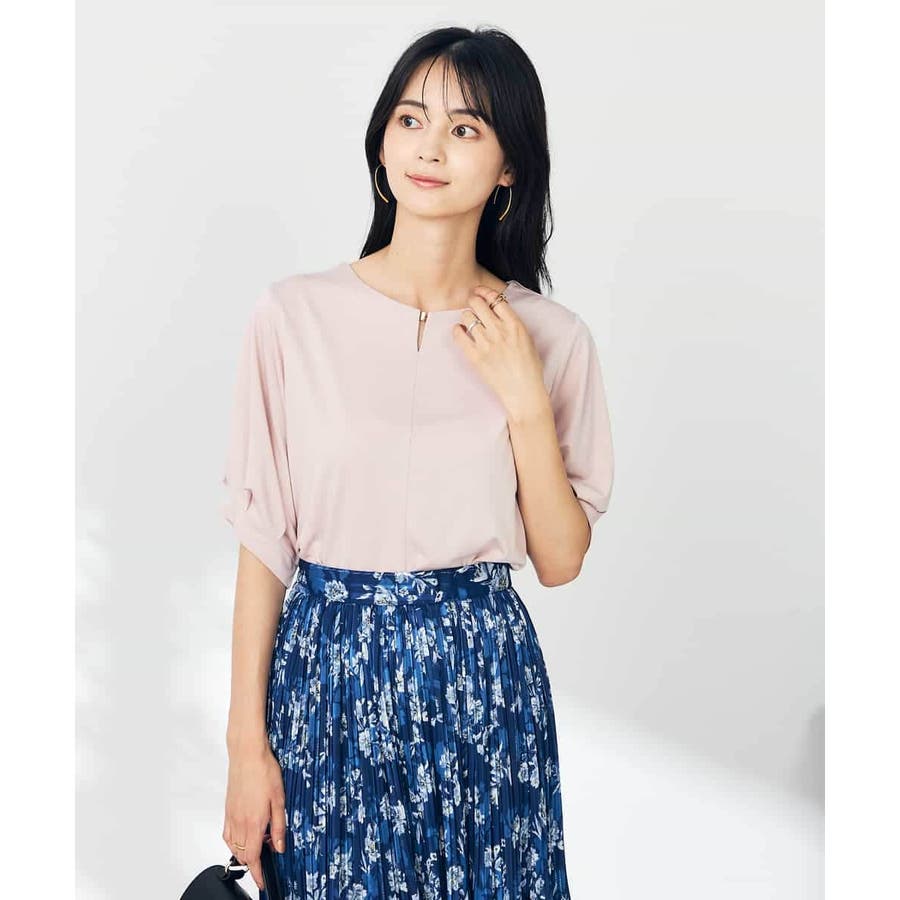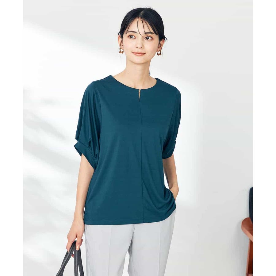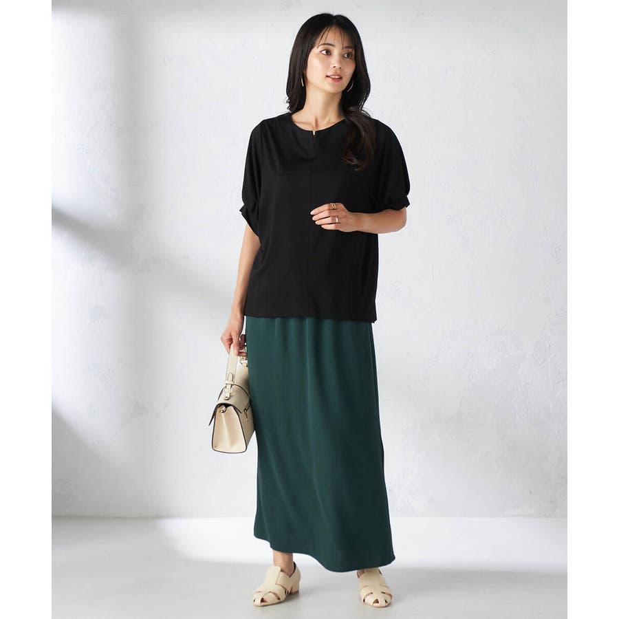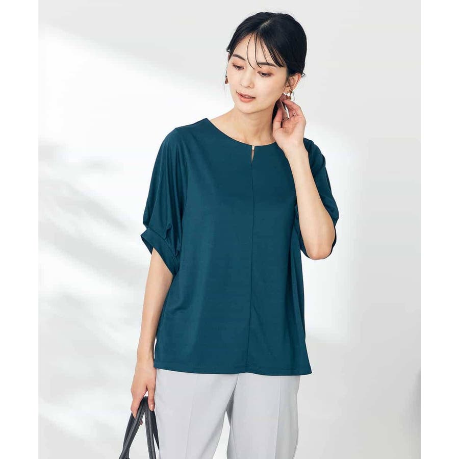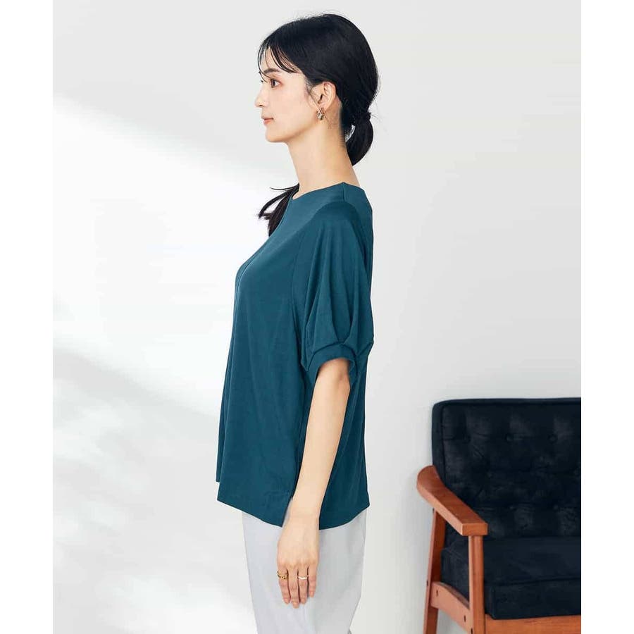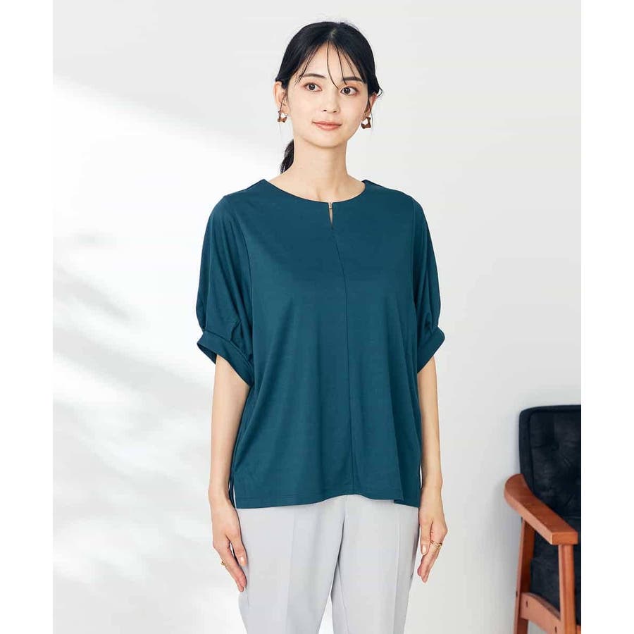 【接触冷感/UVカット/吸水速乾】チャームネックパフスリーブトップス