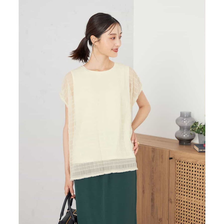・見た目も涼しいマジョリカプリーツとカットソーのドッキングトップス