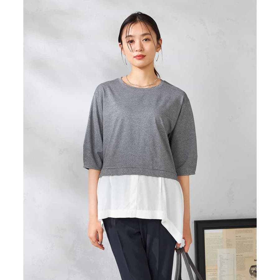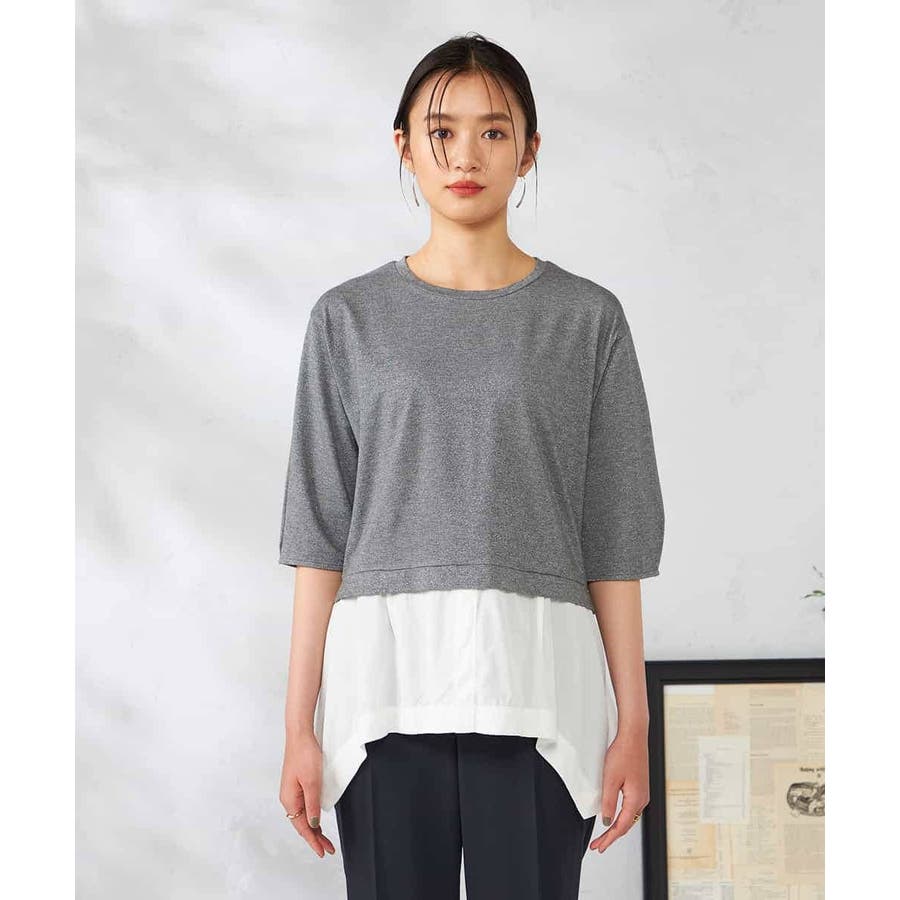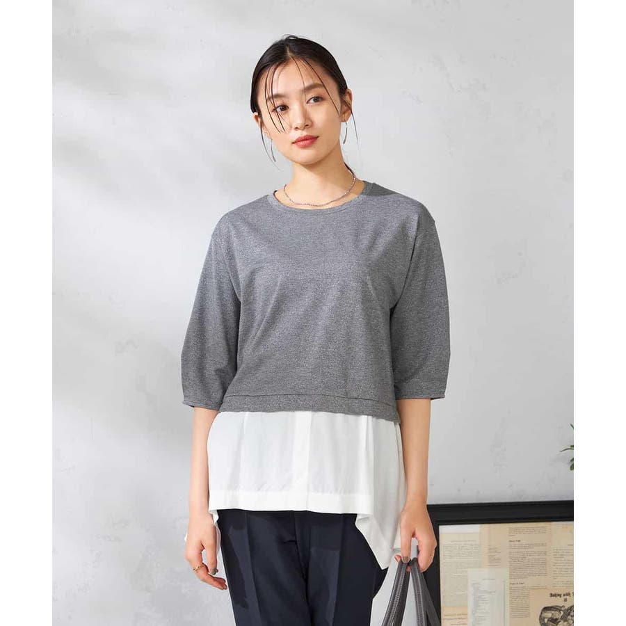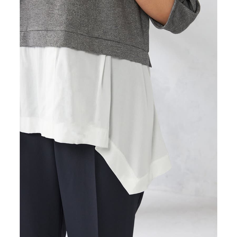 ・ラメがはいった杢グレーがきれいな布帛とシャツのドッキングプルオーバー