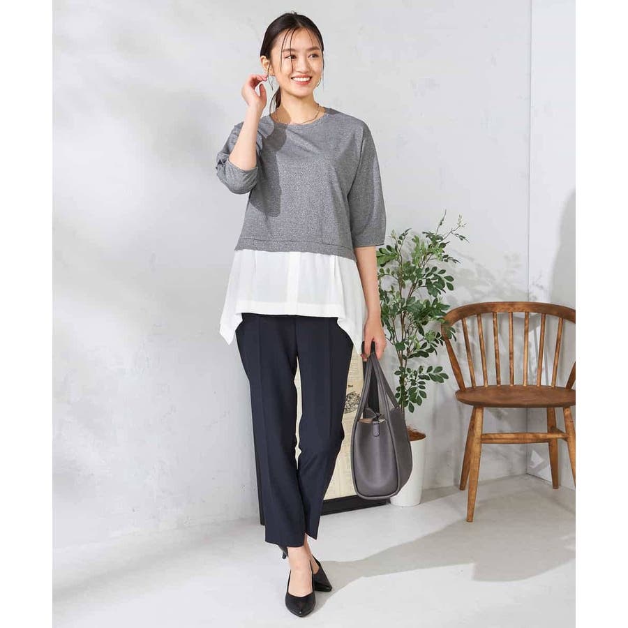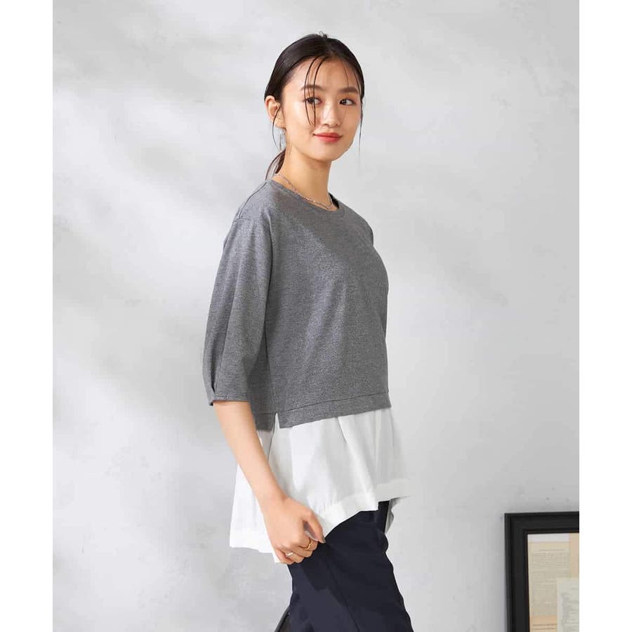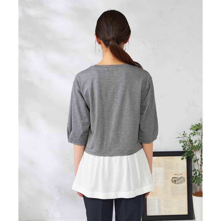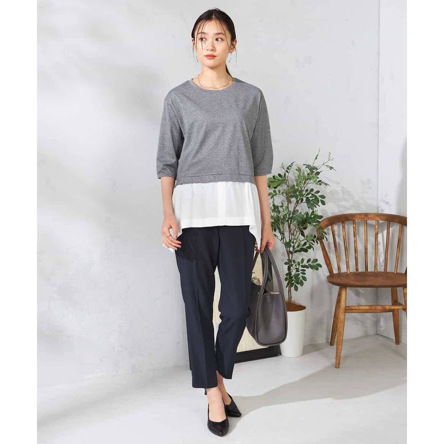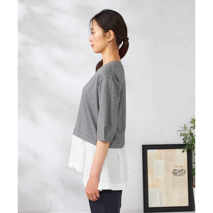 ・ラメがはいった杢グレーがきれいな布帛とシャツのドッキングプルオーバー