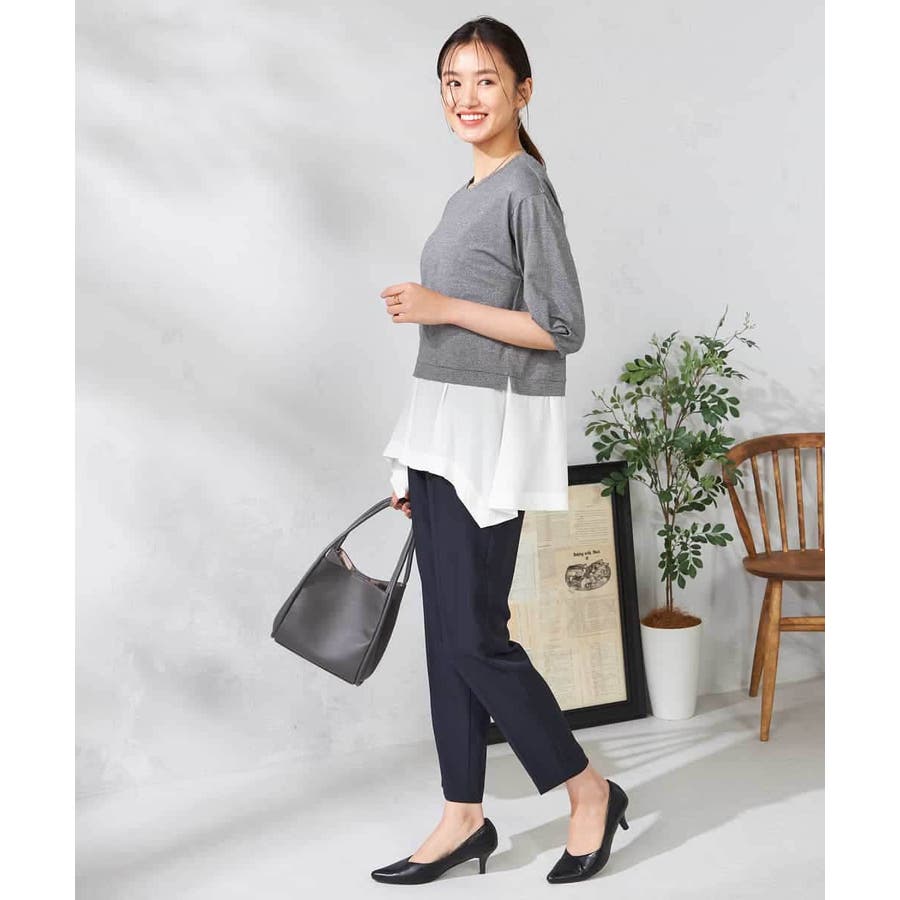 テーパードパンツやナロースカートで通勤スタイルにも。