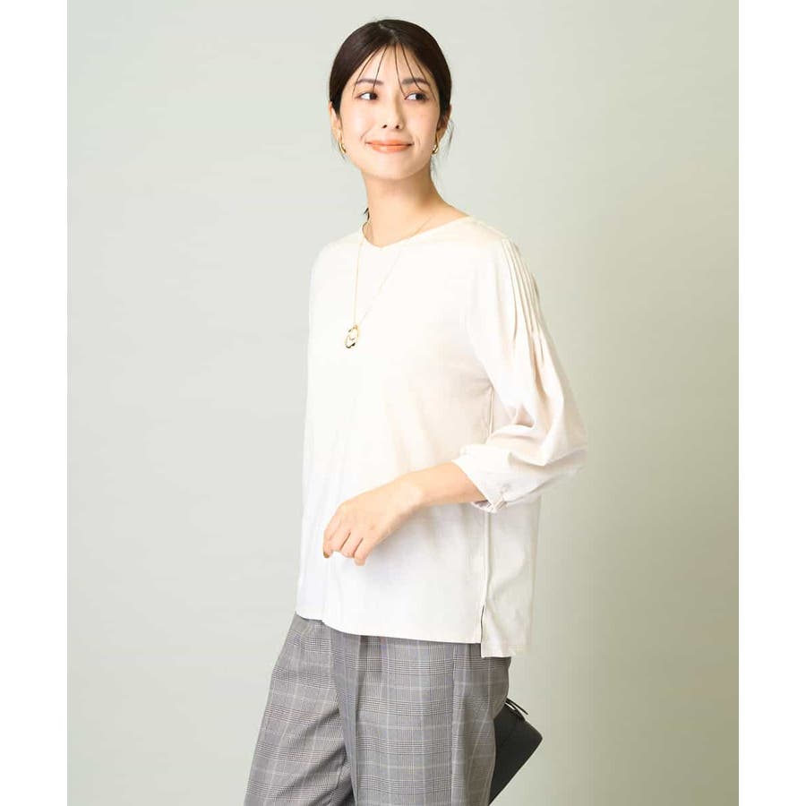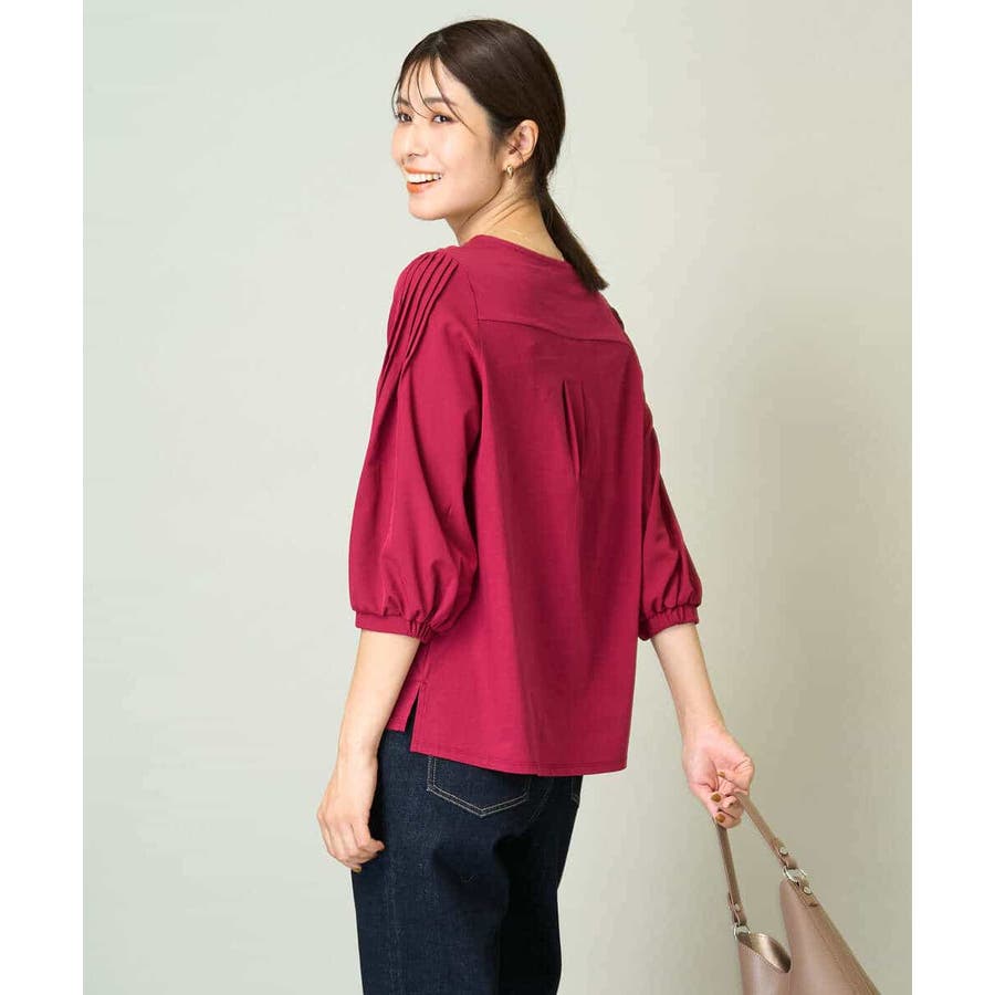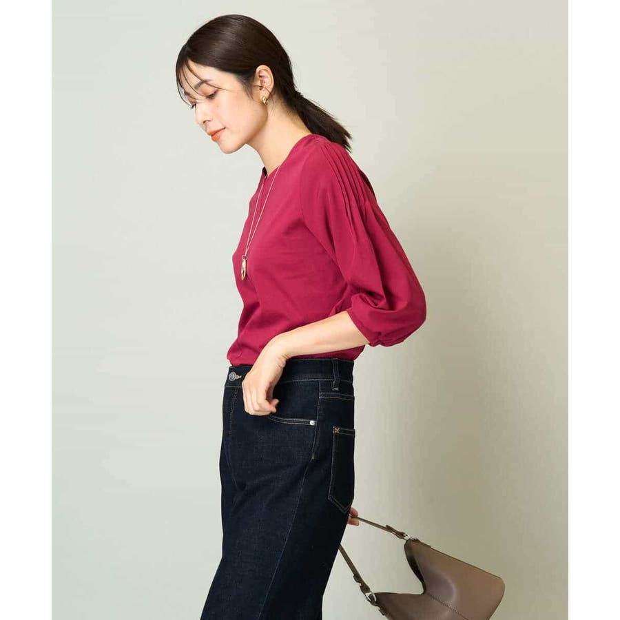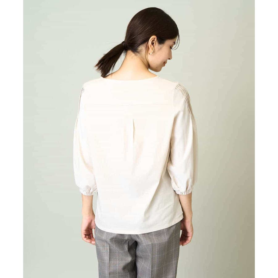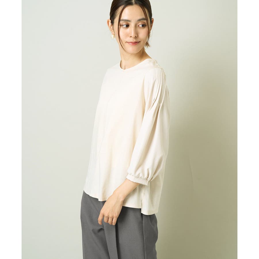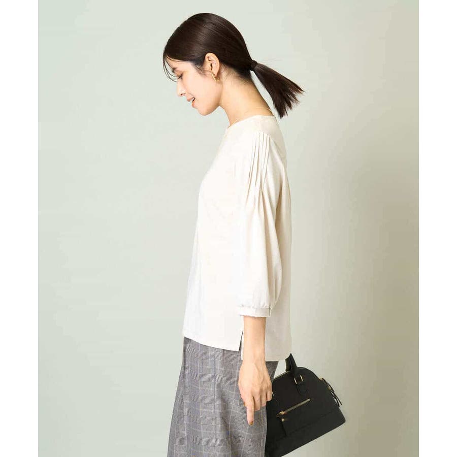 ・お袖のピンタック&パフスリーブが女性らしい控え目な甘さを演出◎