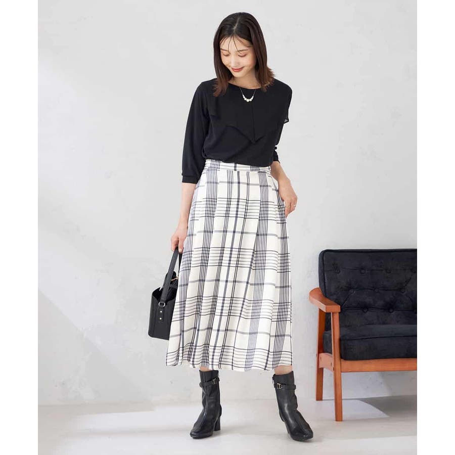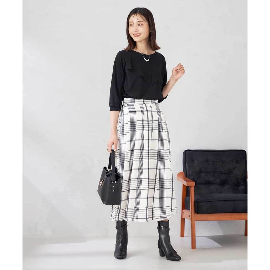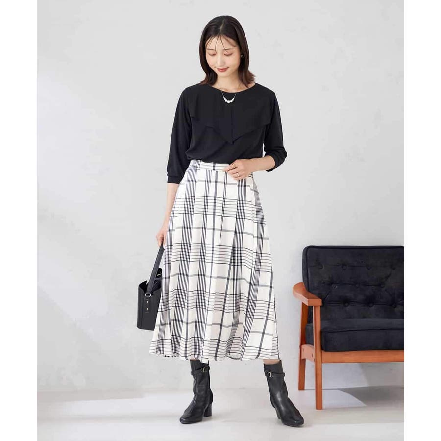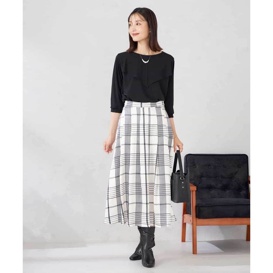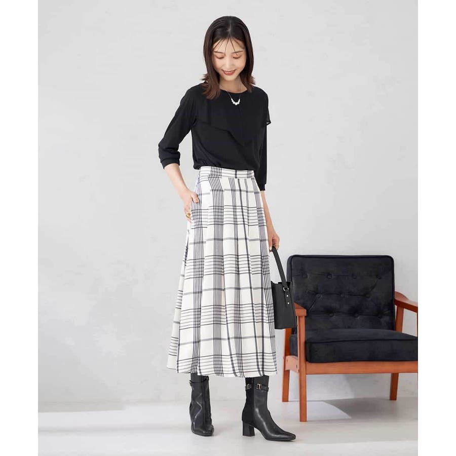フレアスカートにインしたスタイリングがおすすめ。