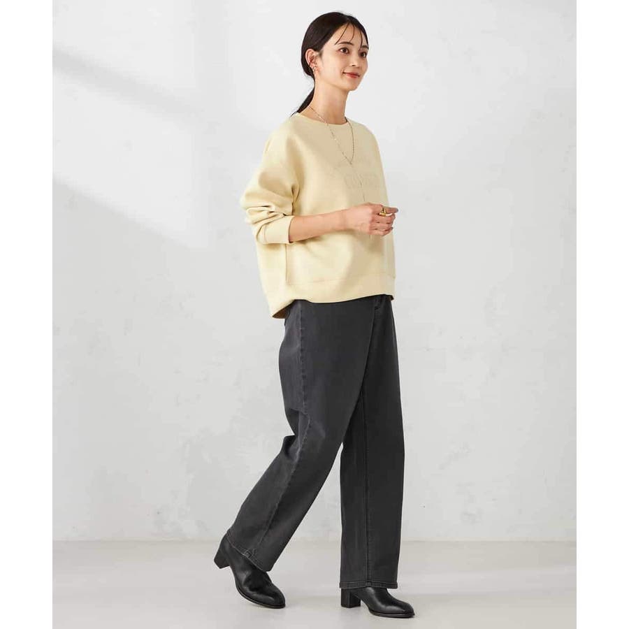 デニムはもちろん、ワイドパンツやスカートなどきれいめボトムとも好相性。