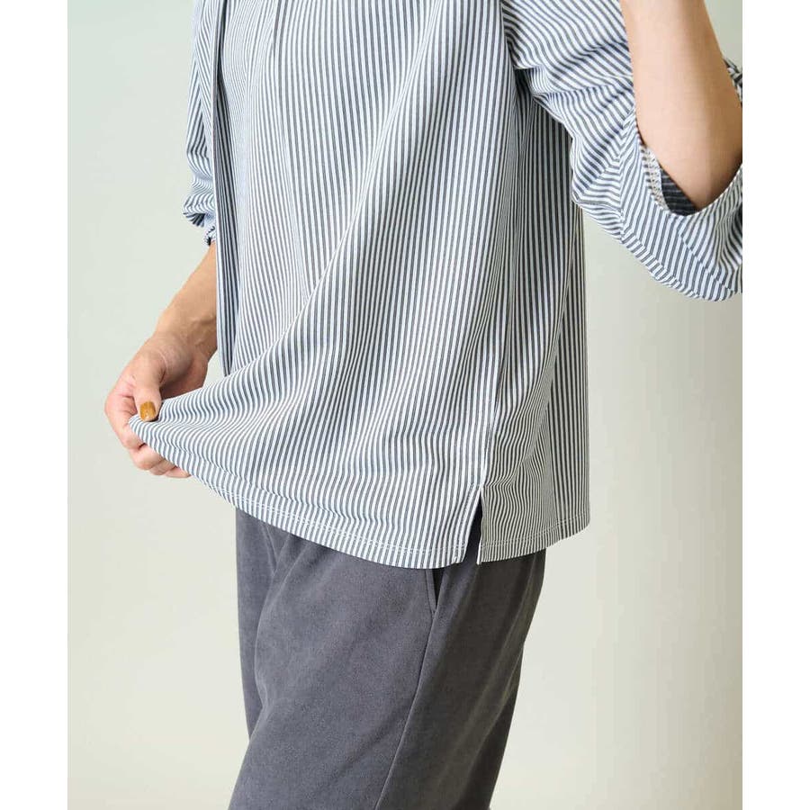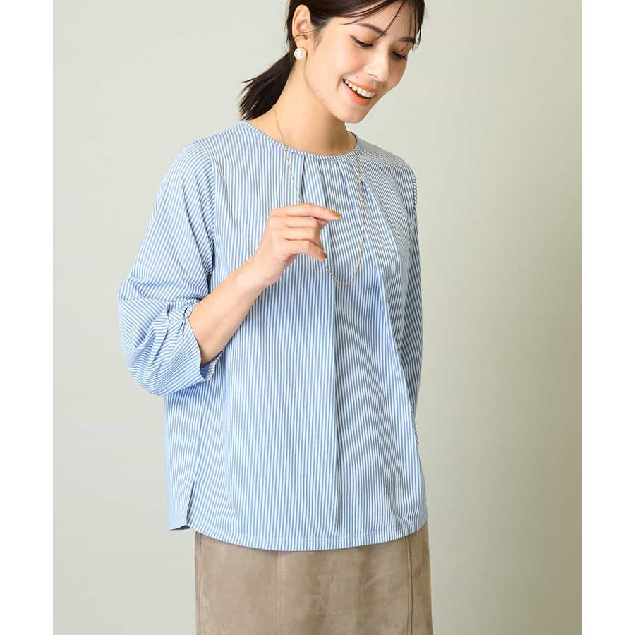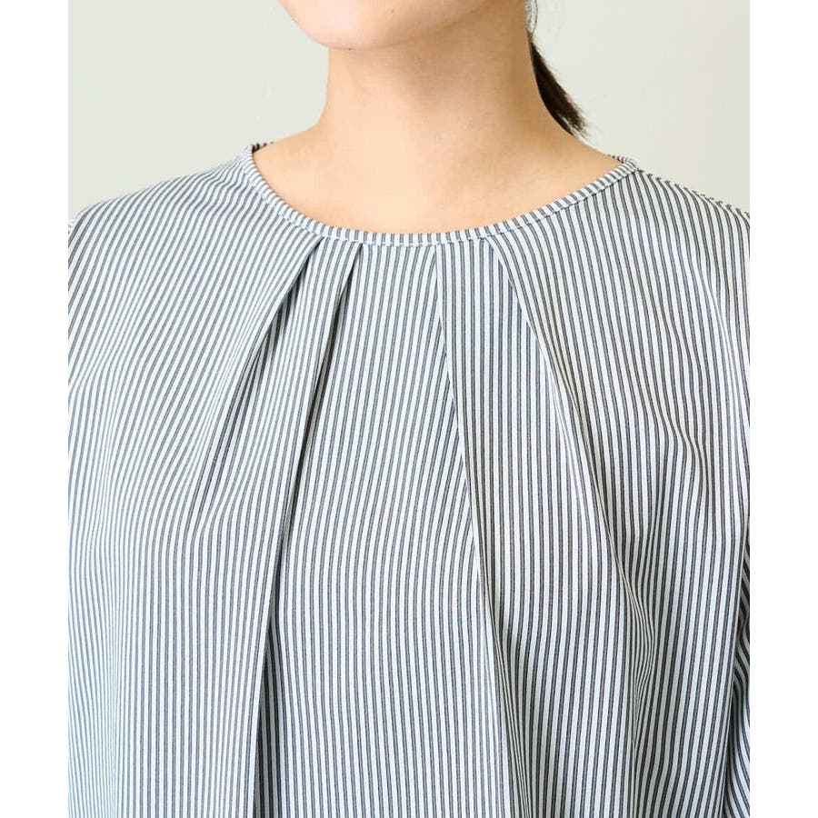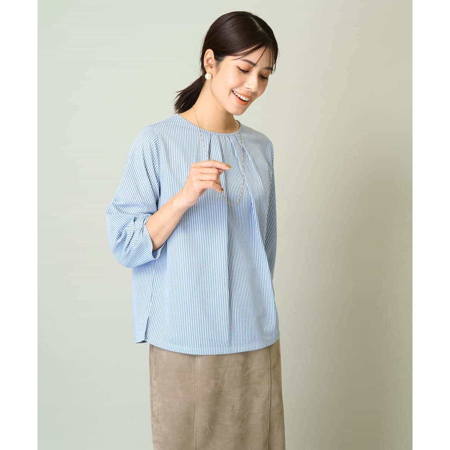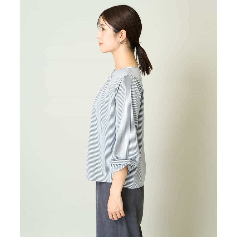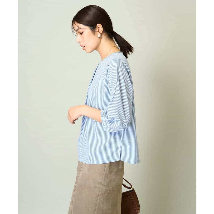 ・ブラウスライクなストライプ柄のカットソートップス