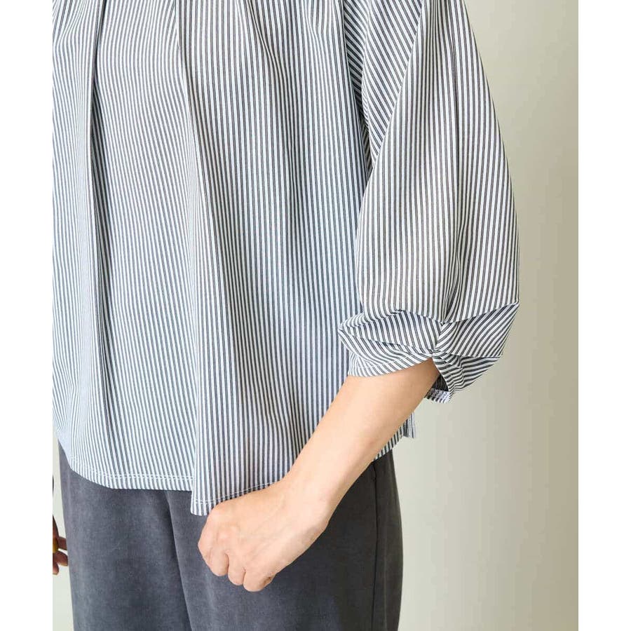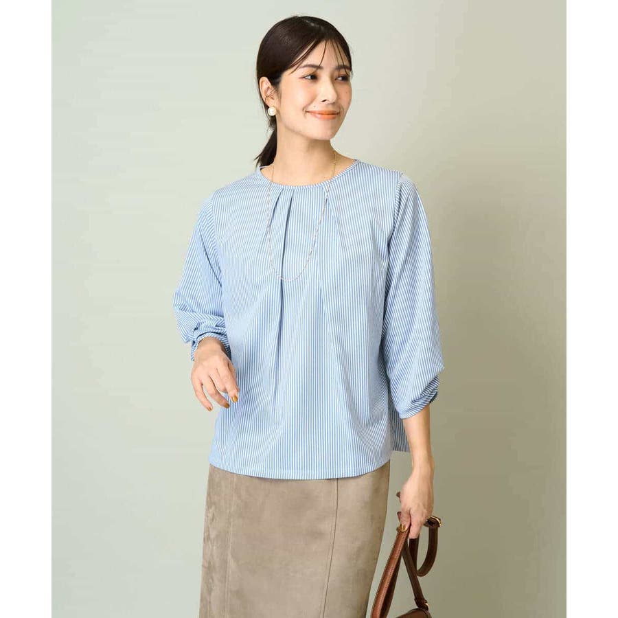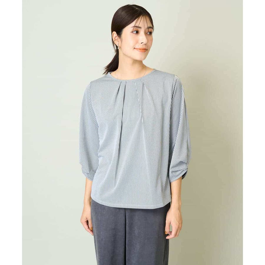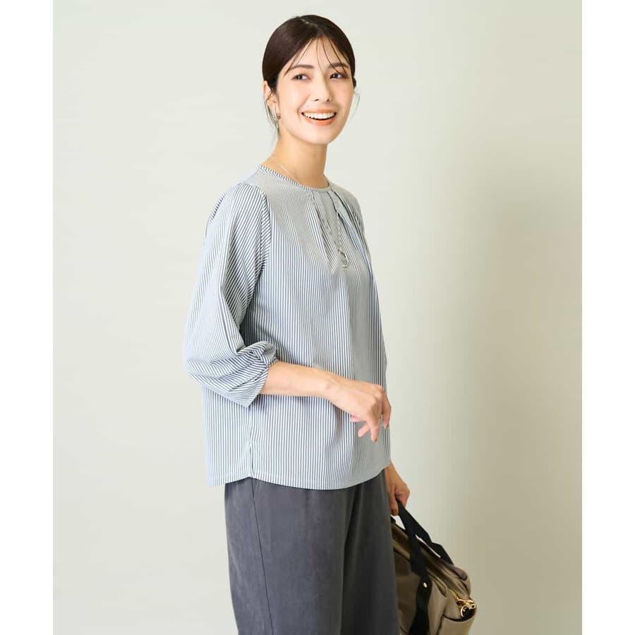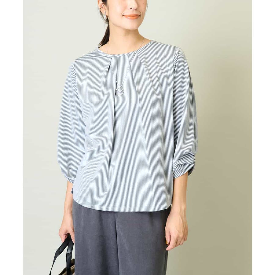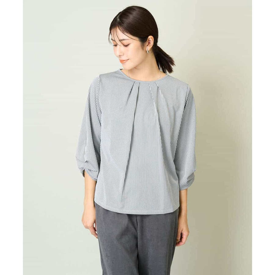 ・ブラウスライクなストライプ柄のカットソートップス