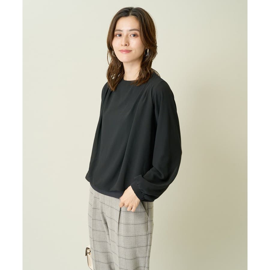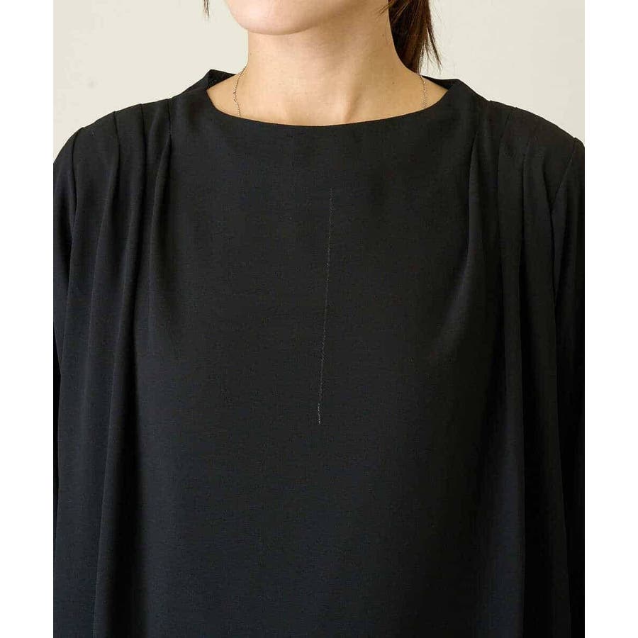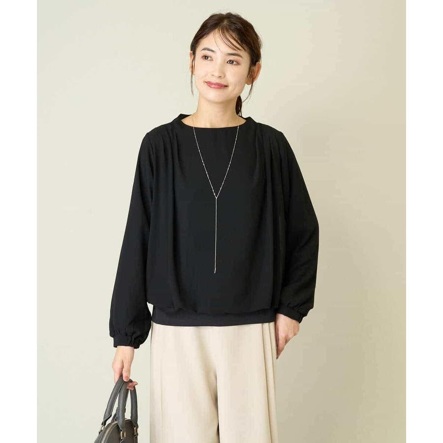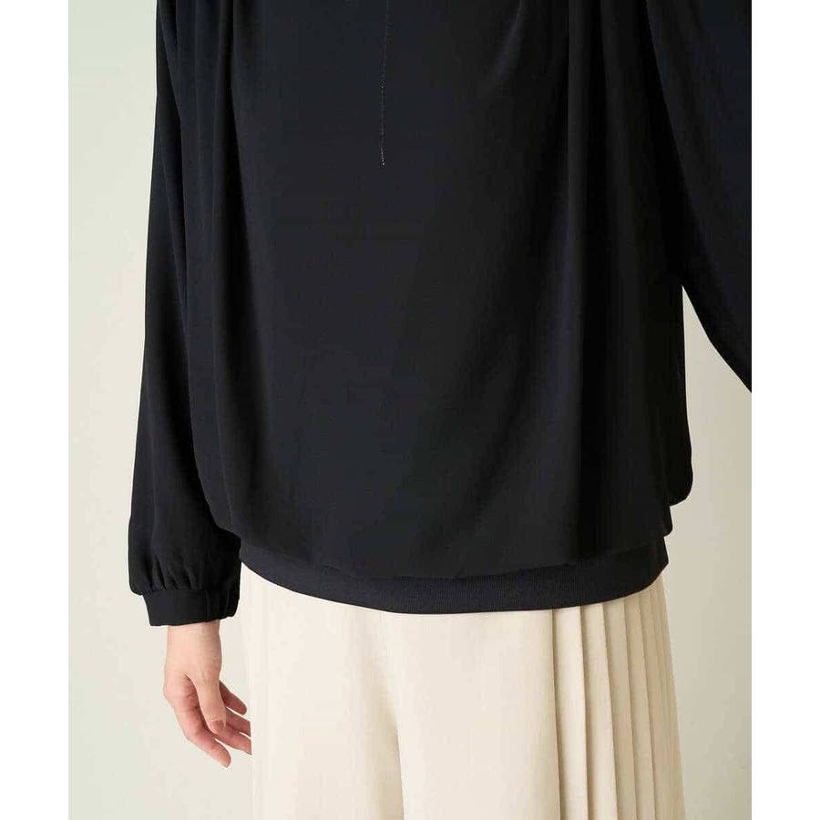 ・ドレープデザインが大人上品な布帛×カットソーのドッキングトップス