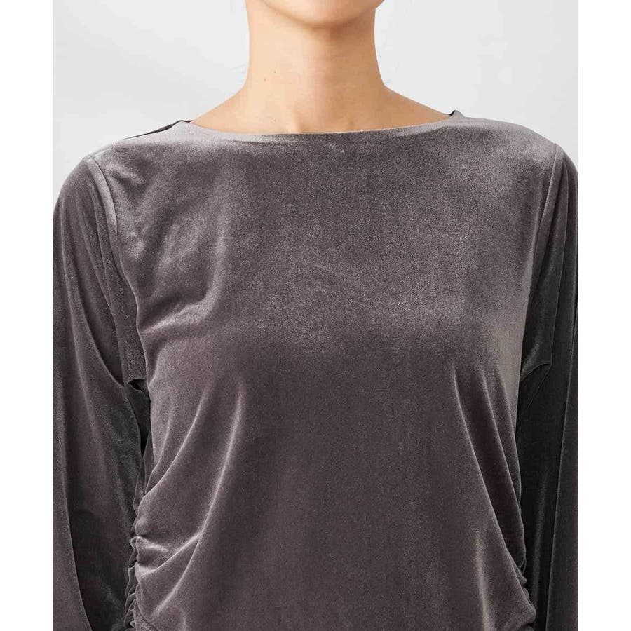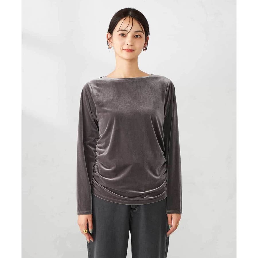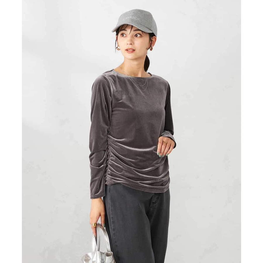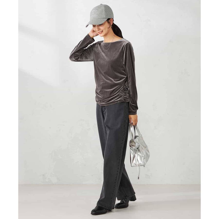 ウエストアウトで着るとギャザーが際立ち、ラフな中に華やかさをプラスできます。