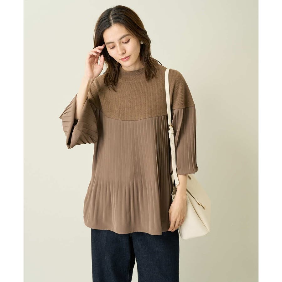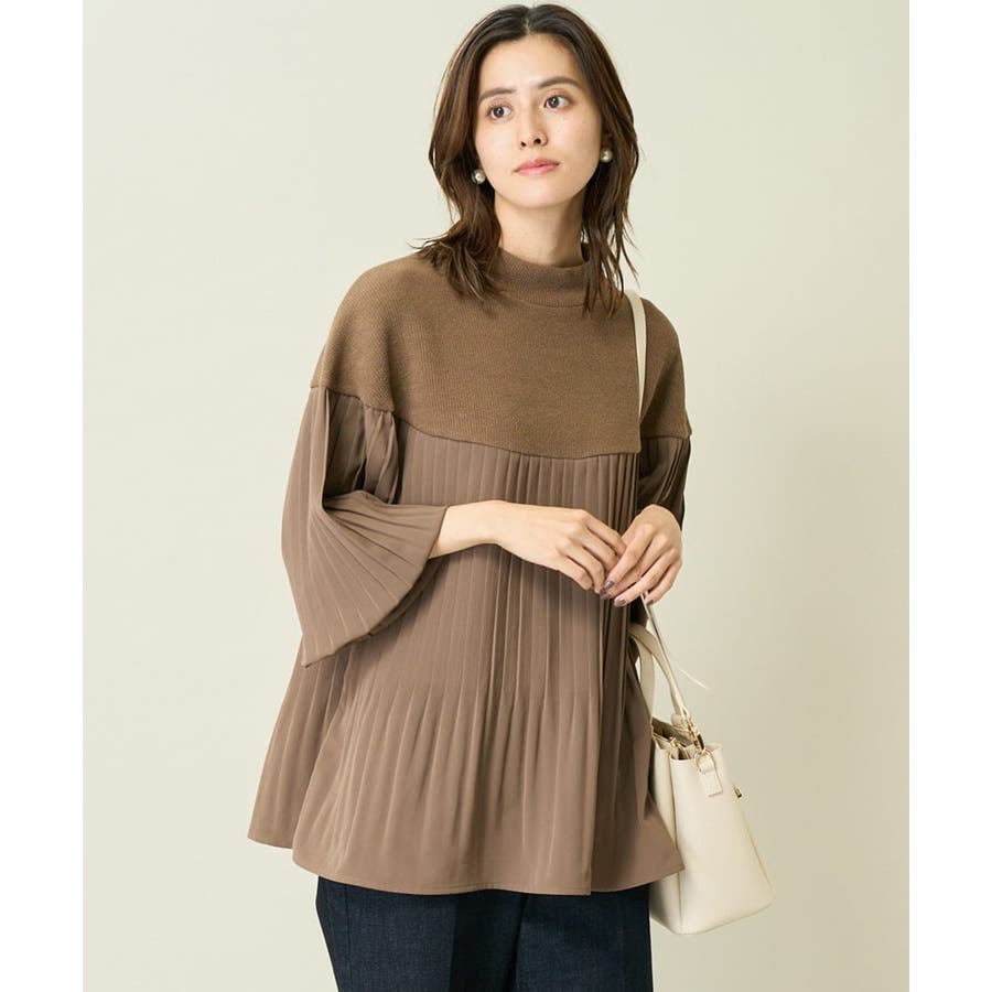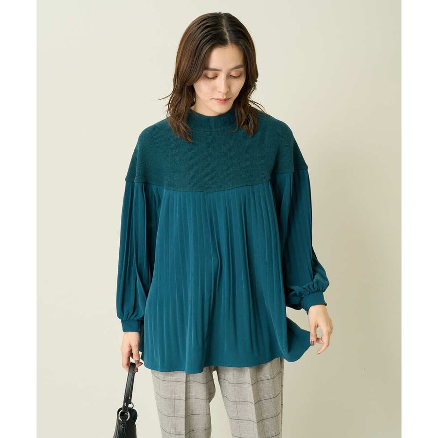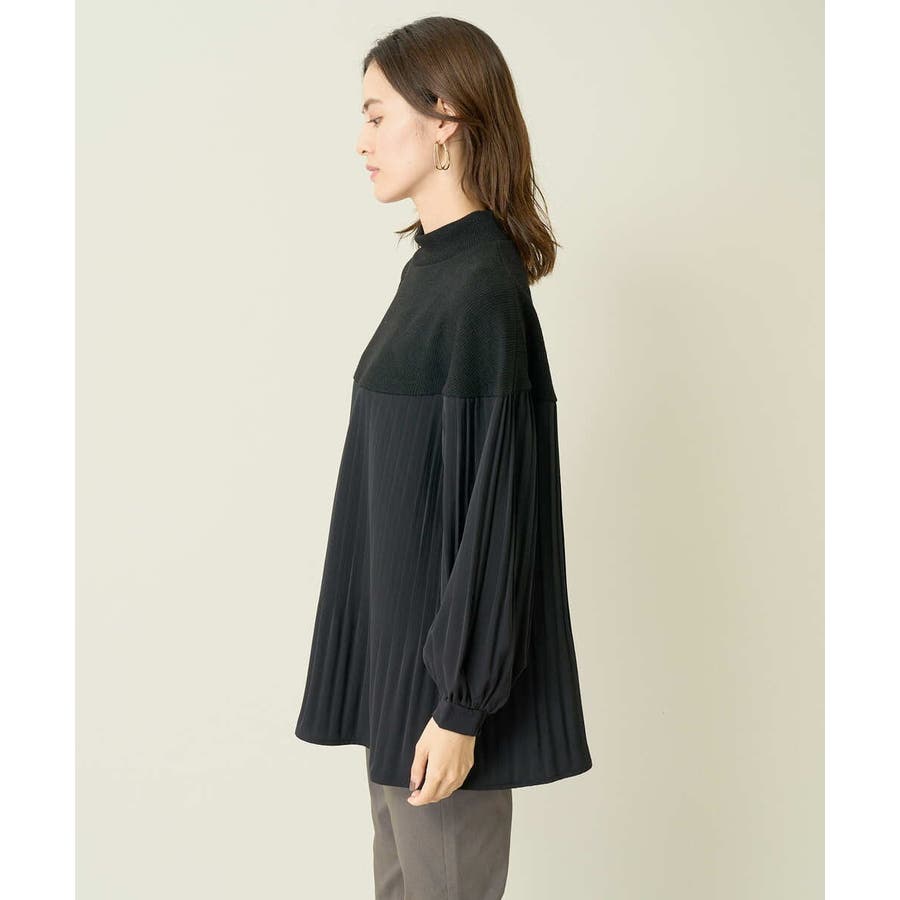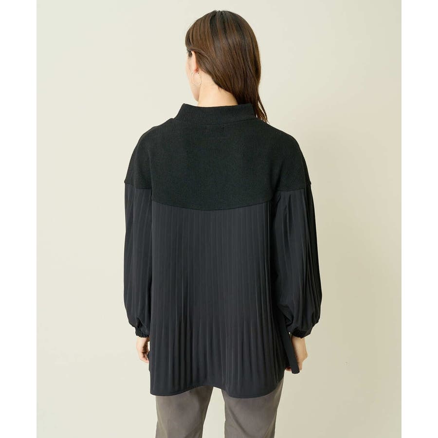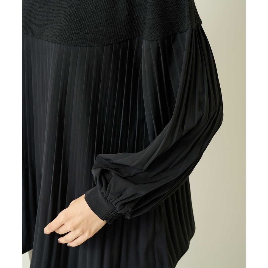 ・ニットソーとプリーツの異素材ドッキングが特徴的なトップス