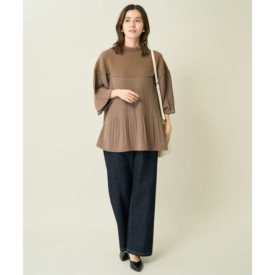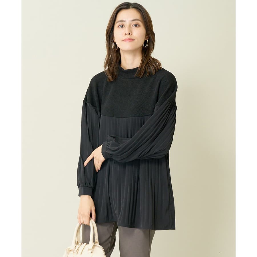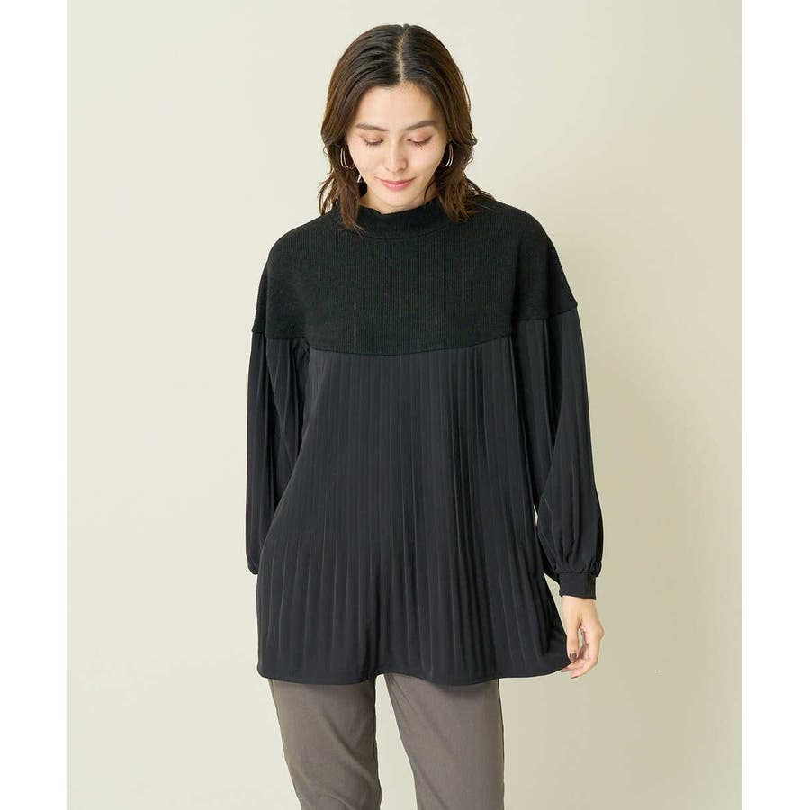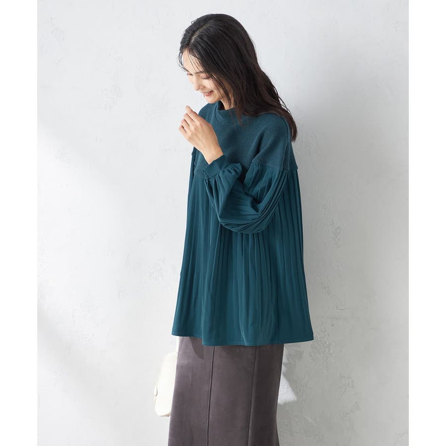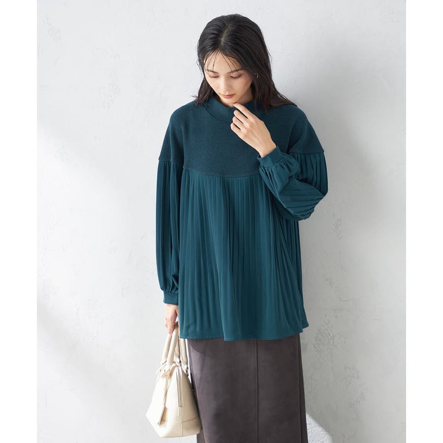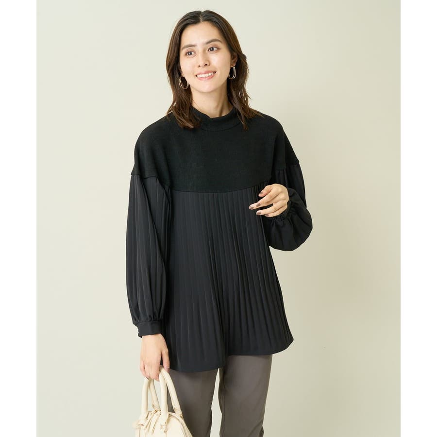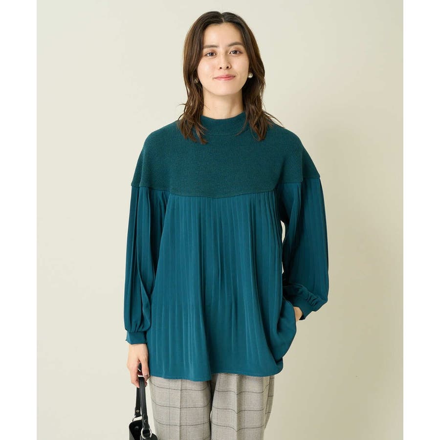 ・ニットソーとプリーツの異素材ドッキングが特徴的なトップス