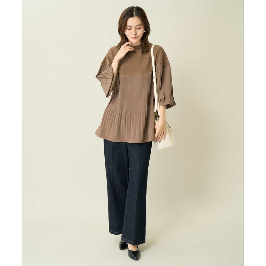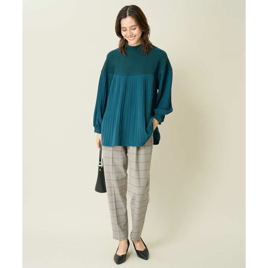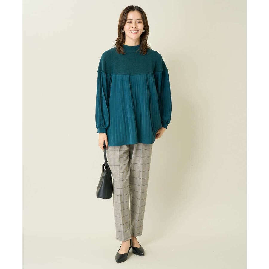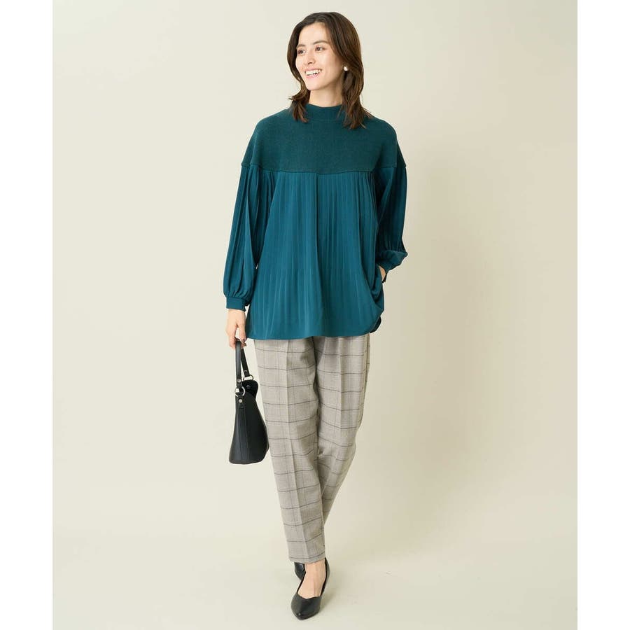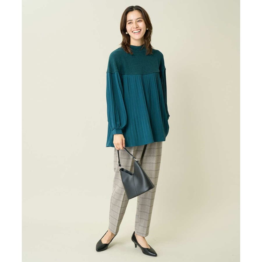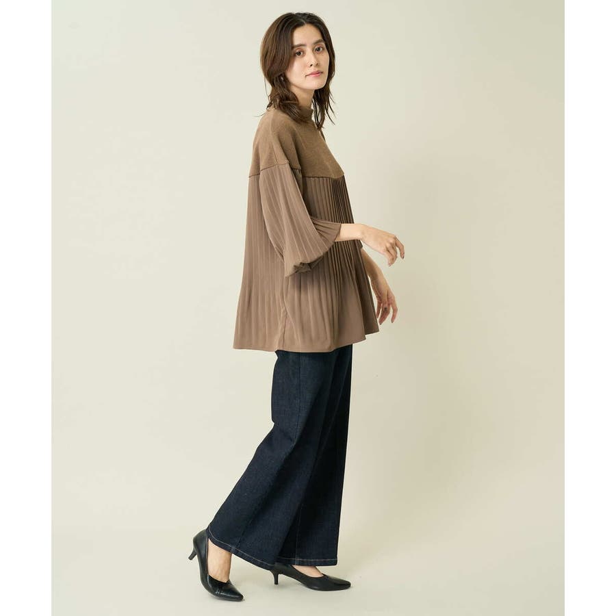 ・ニットソーとプリーツの異素材ドッキングが特徴的なトップス