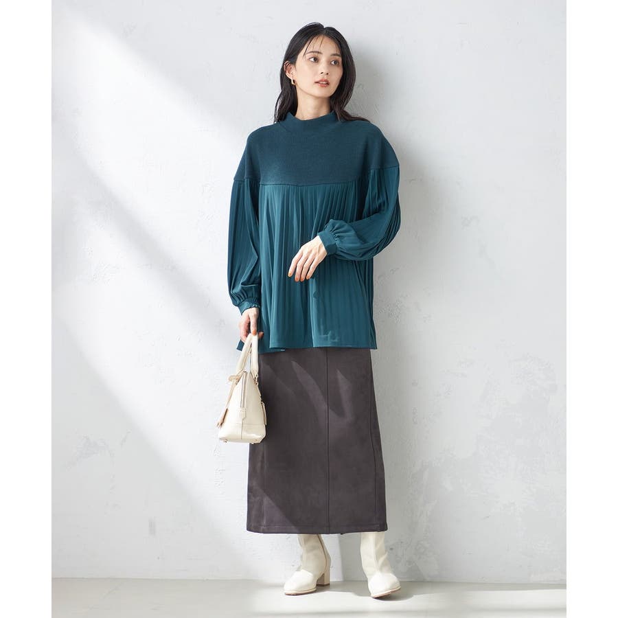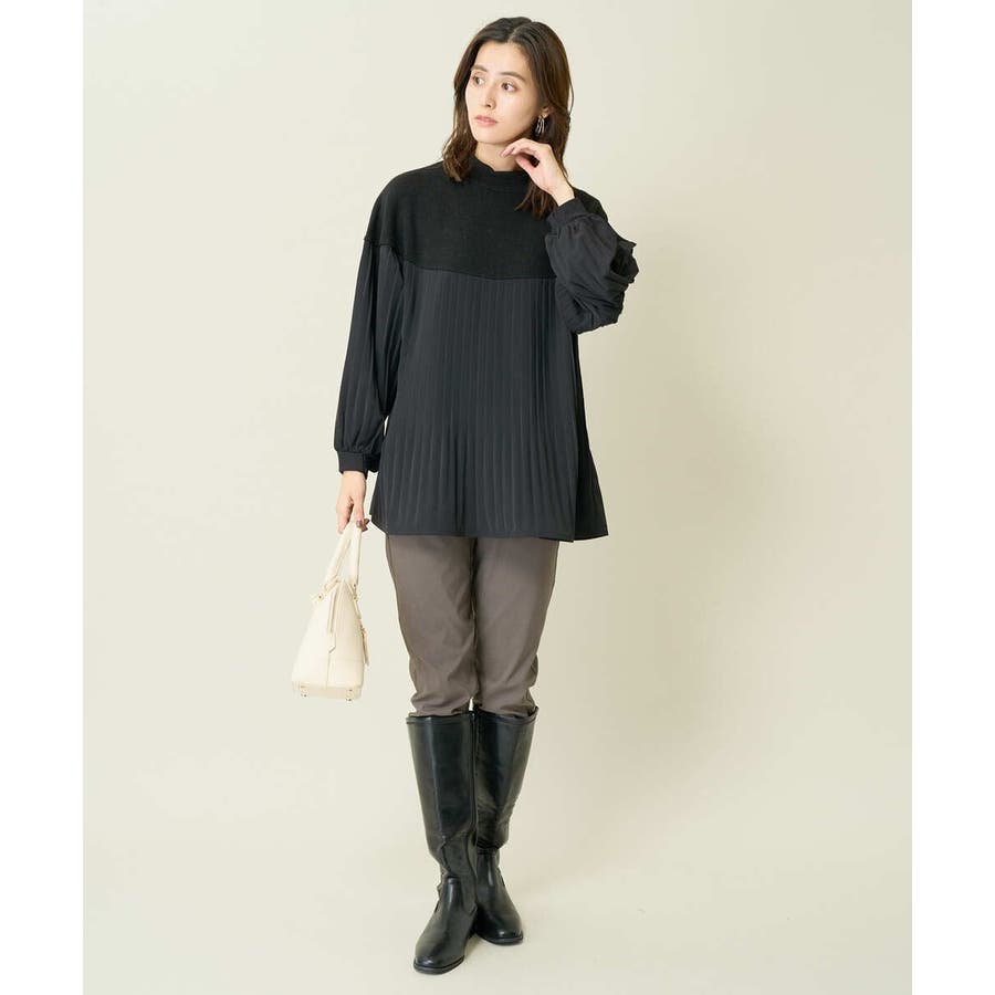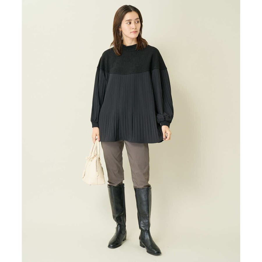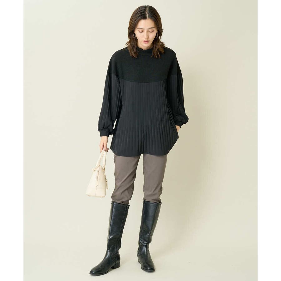 ・さっと着るだけで即主役顔!忙しい朝の味方の異素材プリーツドッキングチュニック