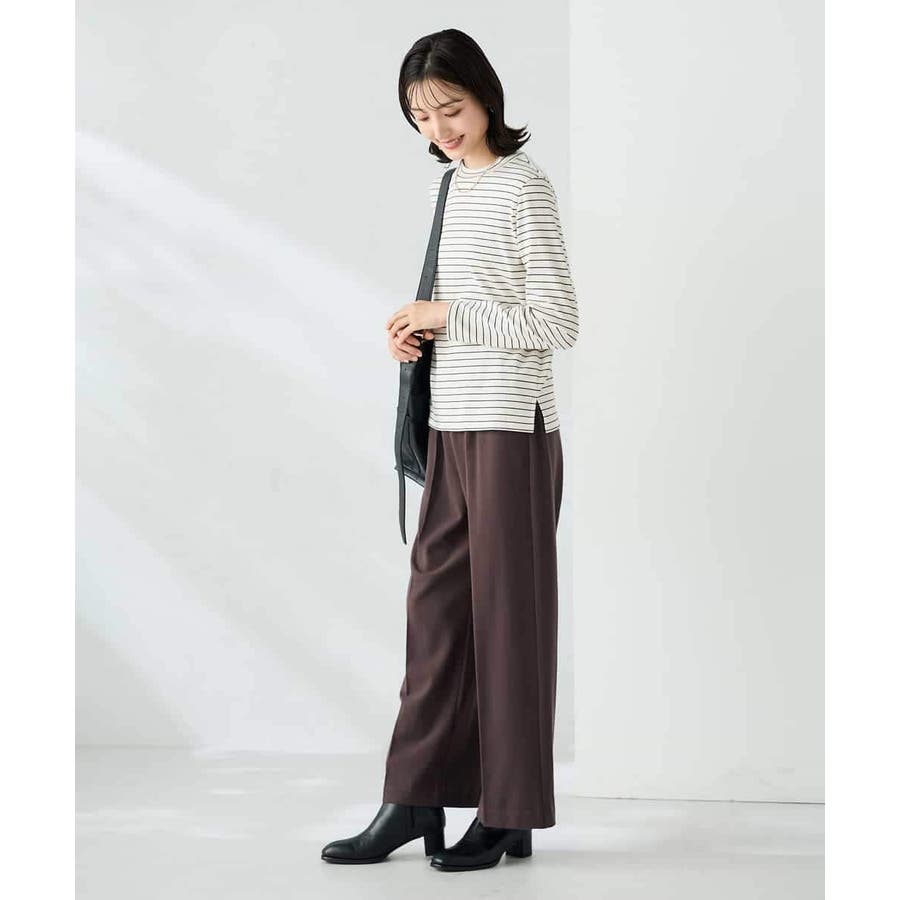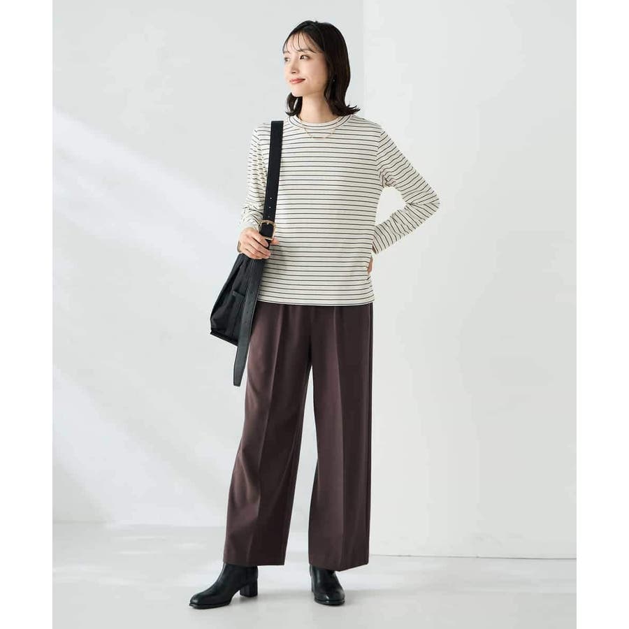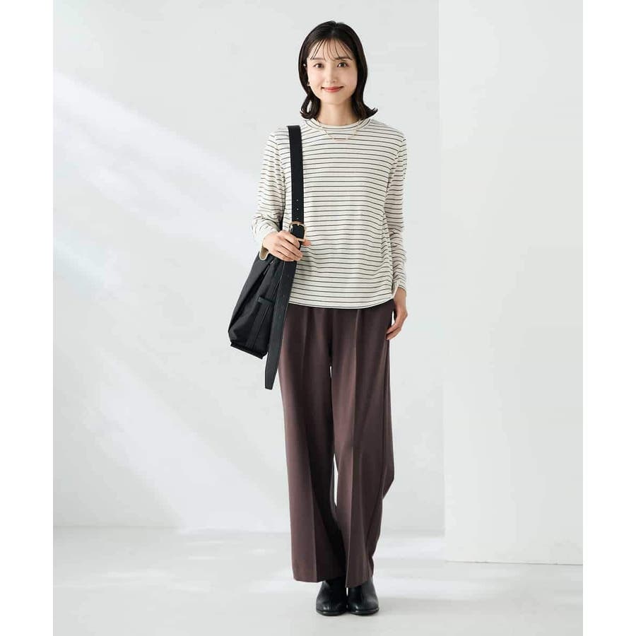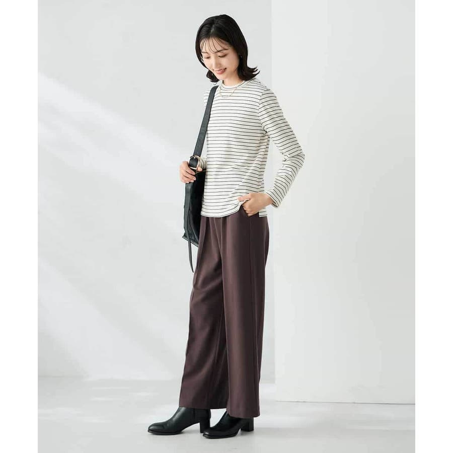 ◆裏起毛美ラクるスッキリ見えイージーストライプワイドパンツ: