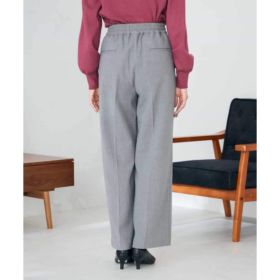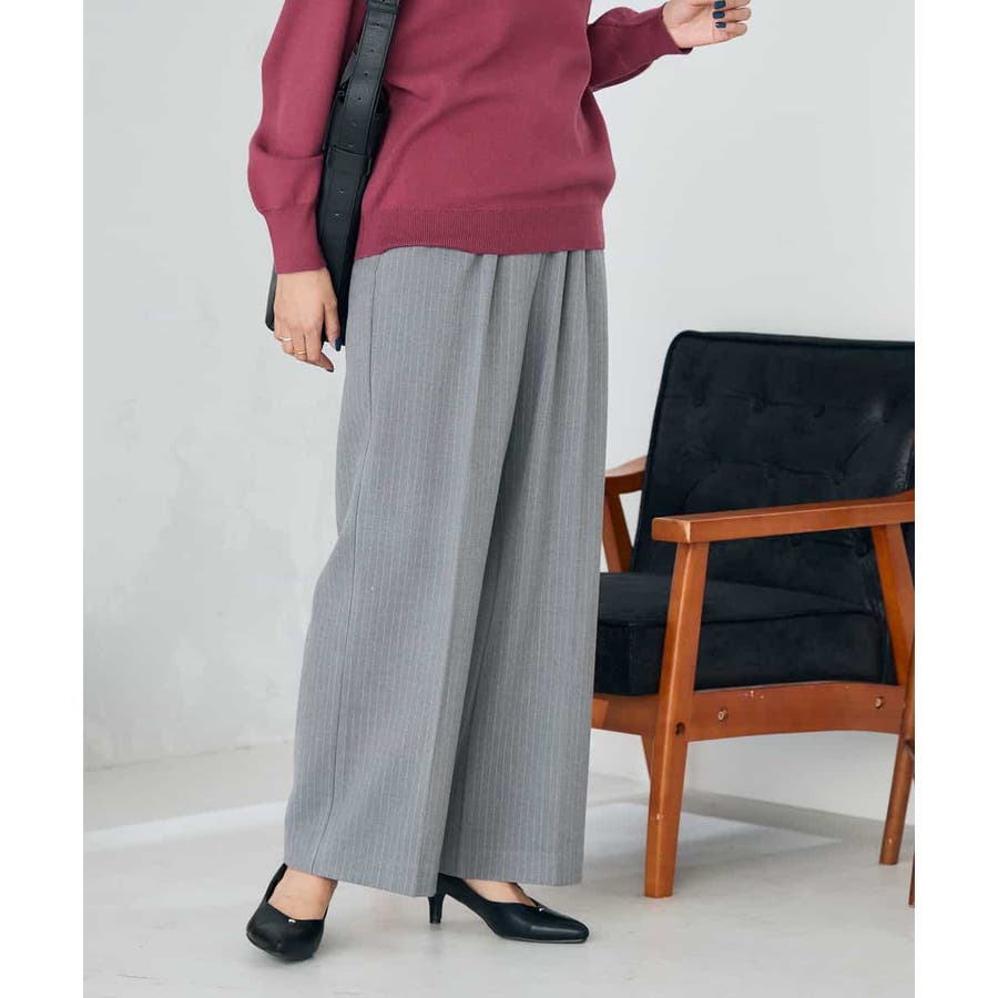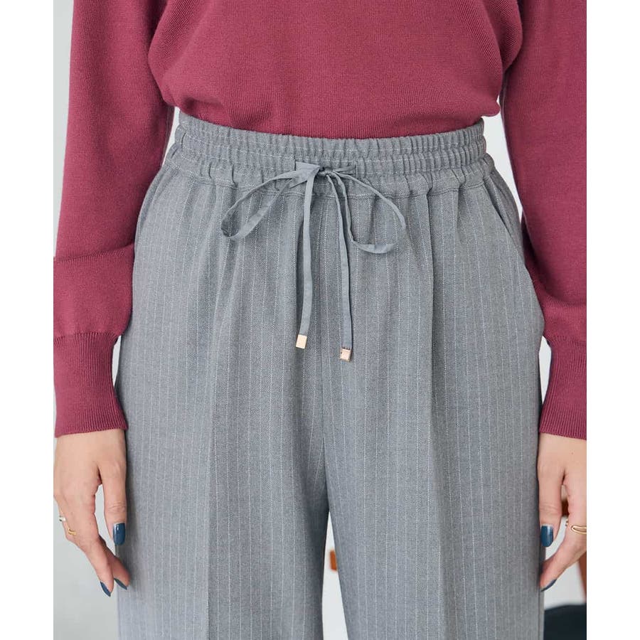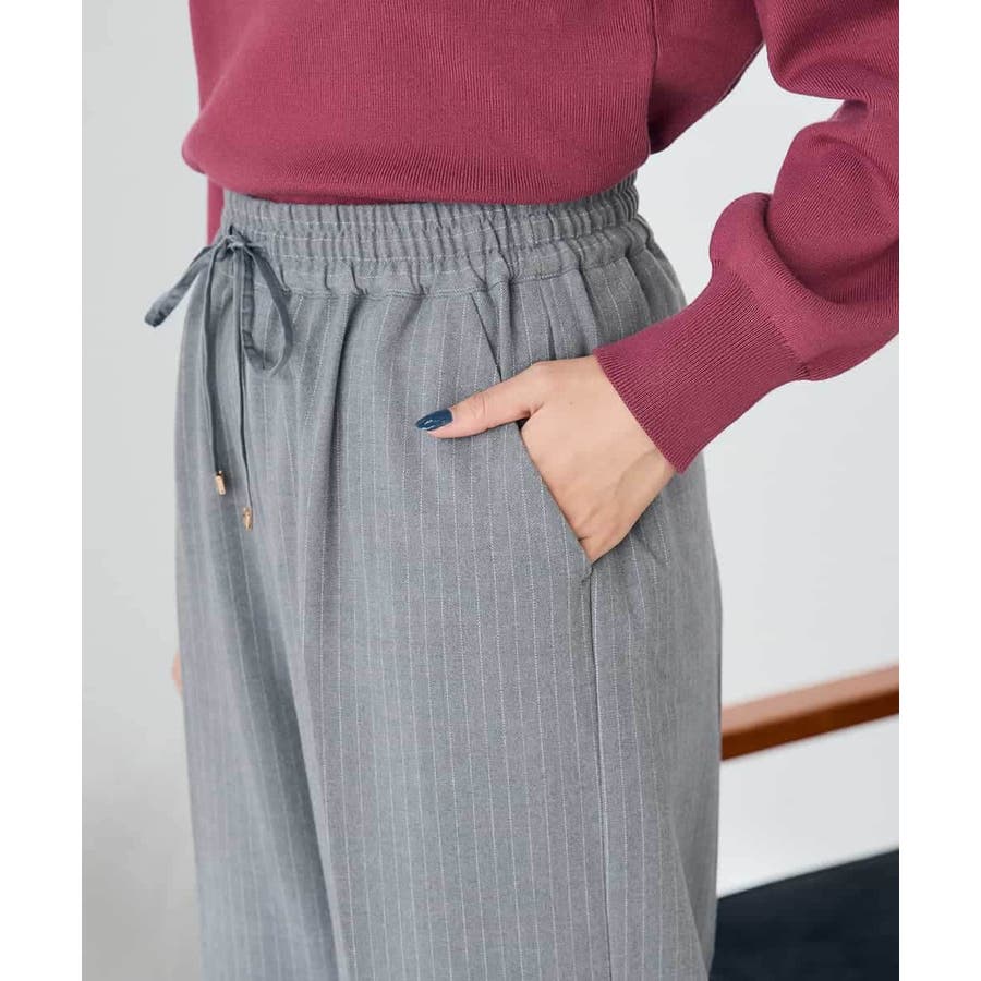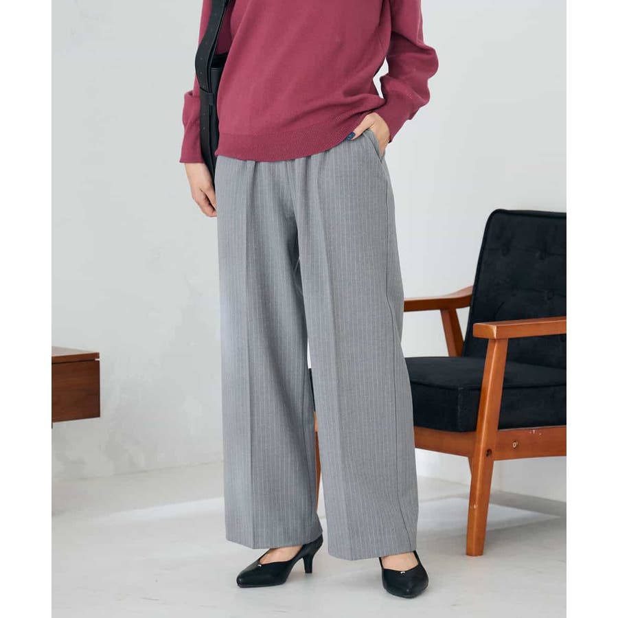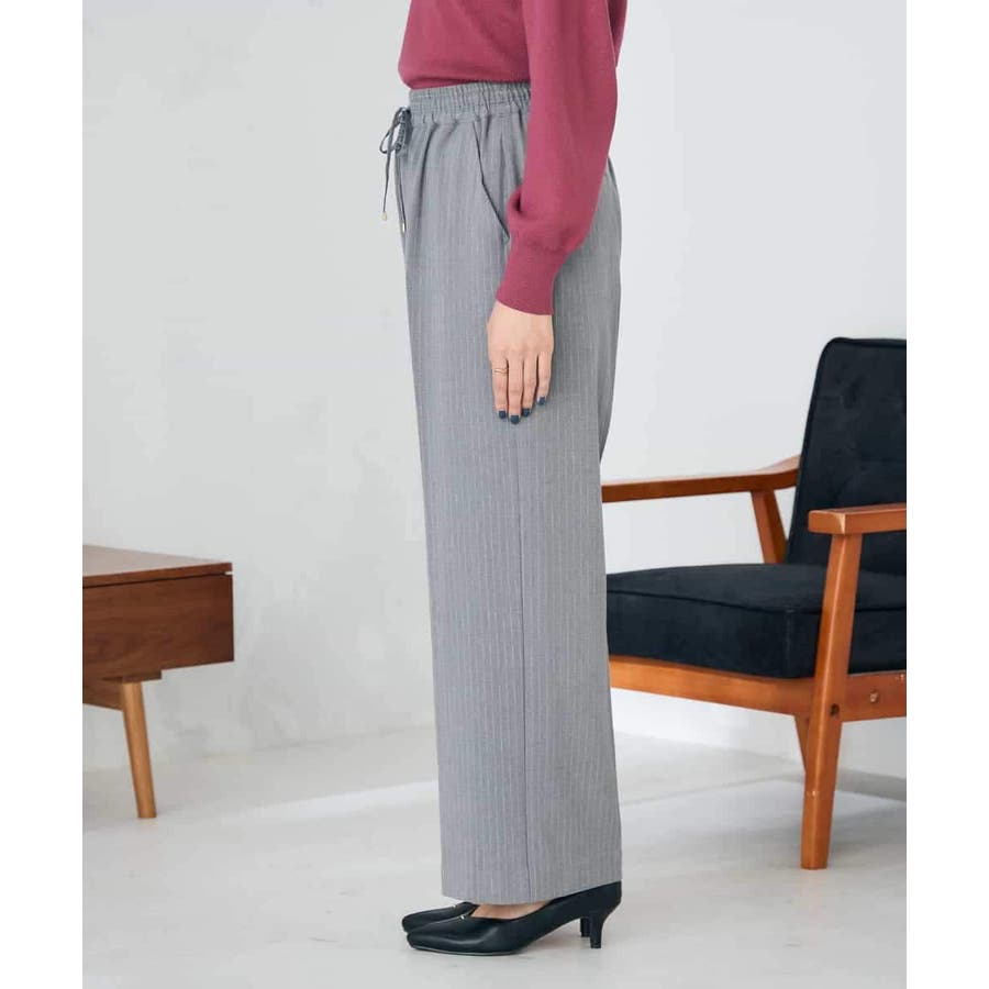 ◆裏起毛美ラクるスッキリ見えイージーストライプワイドパンツ: