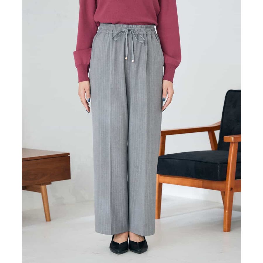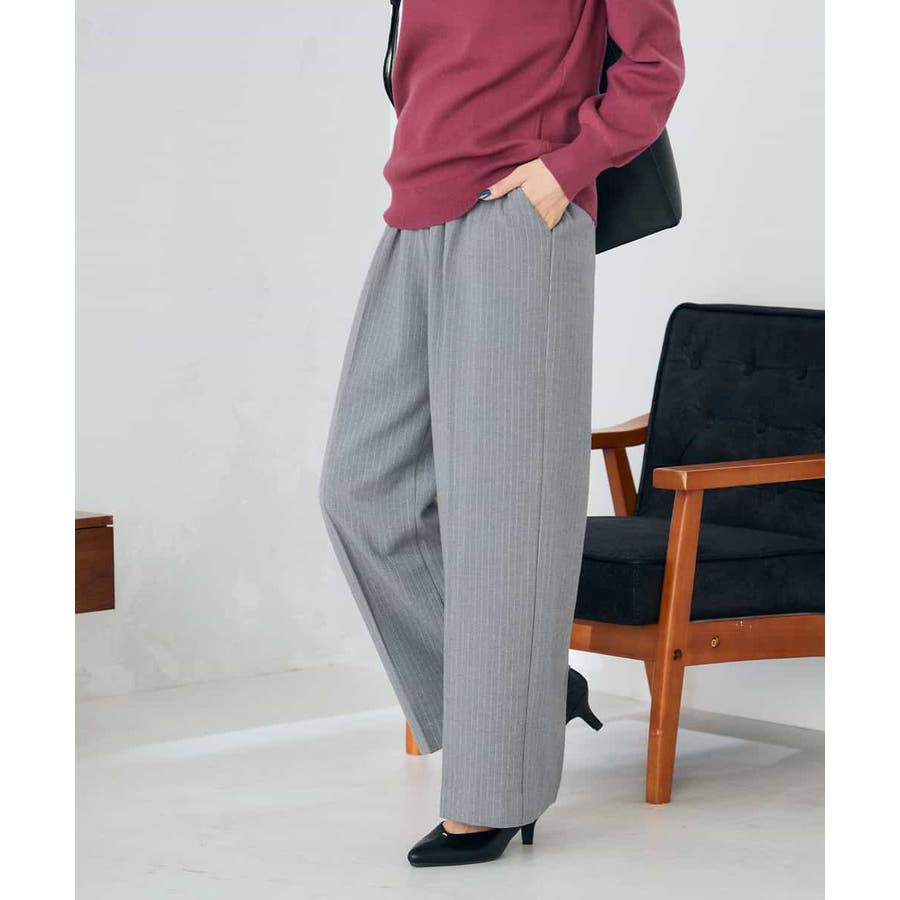裏起毛美ラクるイージーストライプワイドパンツ